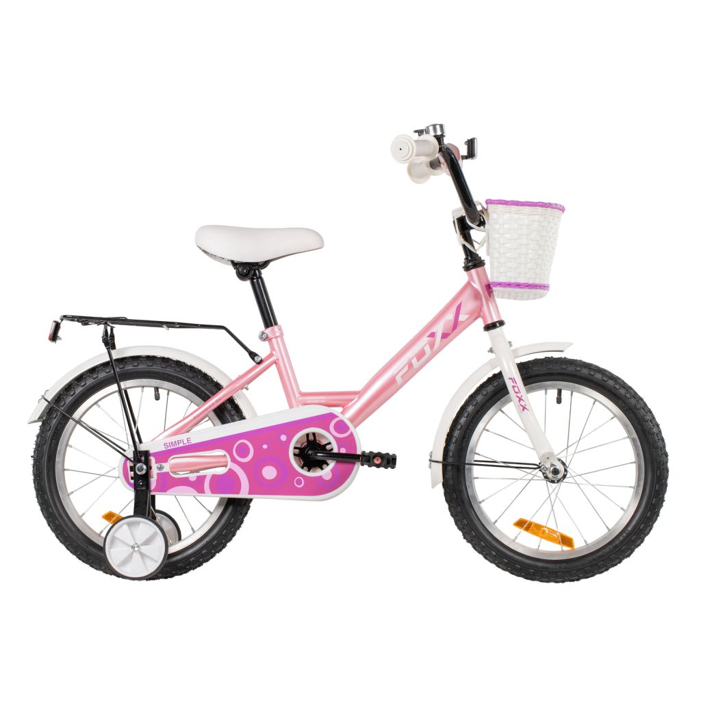 Велосипед, предназначенный для детей в возрасте от трех до шести лет, без переключения передач. Технические особенности: прочная стальная рама, жесткая стальная вилка, одинарные алюминиевые обода (ниппель AV), ножной педальный тормоз, полная защита цепи, съемные боковые колеса, длинные крылья, задний багажник с зажимом, передняя корзинка, мягкая накладка на руле, звонок, катафоты. Подходит для обучения и прогулочного катания в городских условиях. Диаметр колес - 16 дюймов. Вес - 10,1 кг.