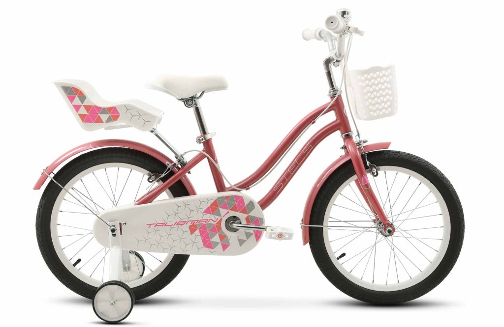 Велосипед, предназначенный для девочек в возрасте от трех до шести лет, без переключения передач. Технические особенности: прочная стальная рама, жесткая стальная вилка, одинарные стальные обода (под AV ниппель), ободные тормоза клещевого типа U-типа, полная защита цепи, длинные крылья, съемные боковые колеса, сиденье для куклы, передняя корзинка, звонок. Подходит для обучения и прогулочного катания в городских условиях. Диаметр колес - 16 дюймов. Вес - 10,53 кг.