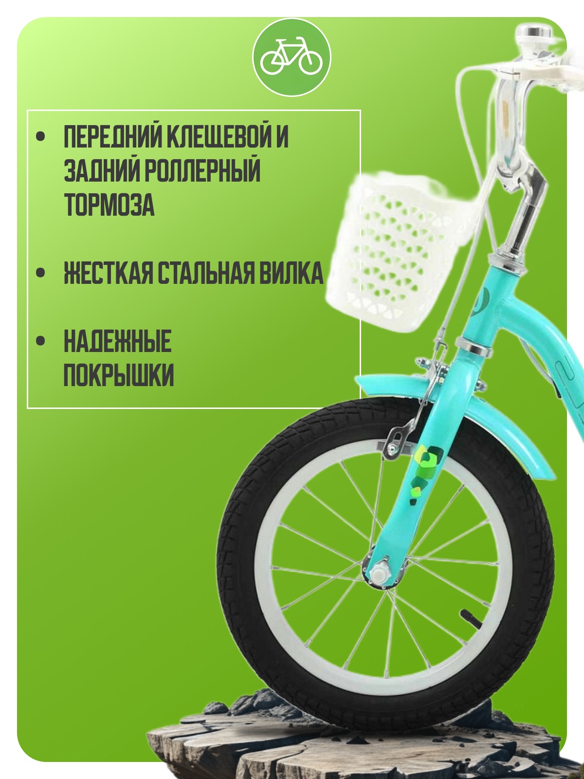 Велосипед, предназначенный для детей в возрасте от двух до четырех лет, без переключения передач. Технические особенности: прочная стальная рама, жесткая стальная вилка, передний клещевой и задний роллерный (барабанный) тормоза, полная защита цепи, съемные боковые колеса, крылья, сиденье для куклы, передняя корзина, звонок. Подходит для обучения и легких прогулок. Диаметр колес - 14 дюймов. Вес - 9,5 кг.