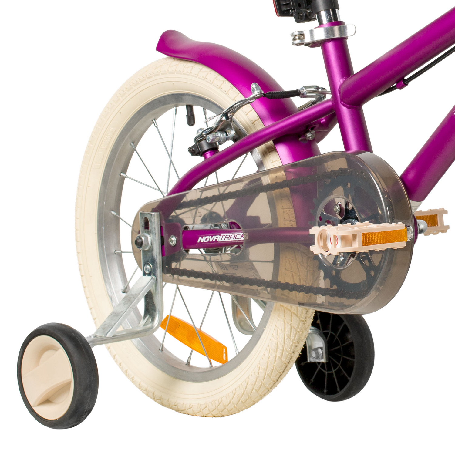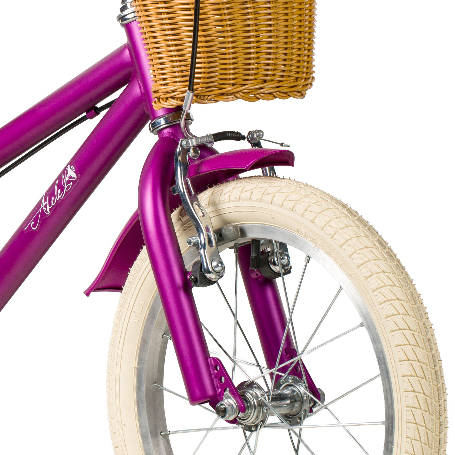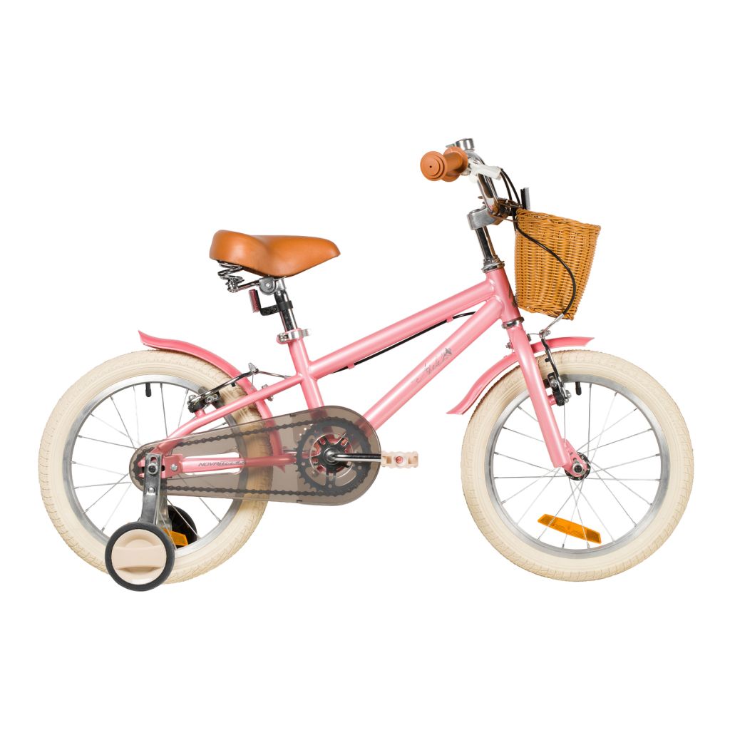 Велосипед, предназначенный для девочек в возрасте от трех до шести лет, без переключения передач. Технические особенности: прочная стальная рама, жесткая стальная вилка, одинарные алюминиевые обода (ниппель AV), ободные механические тормоза V-brake, полная защита цепи, съемные боковые колеса, крылья, передняя корзинка, звонок, катафоты. Подходит для обучения и прогулочного катания в городских условиях. Диаметр колес - 16 дюймов. Вес - 10,3 кг.