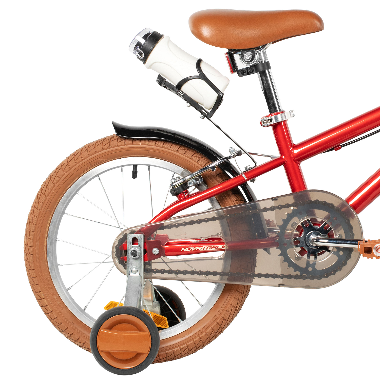 Особенности велосипеда: Боковые колеса, Защита цепи, Звонок, Катафоты, Крепления для боковых колес, Крылья, Широкое седло.