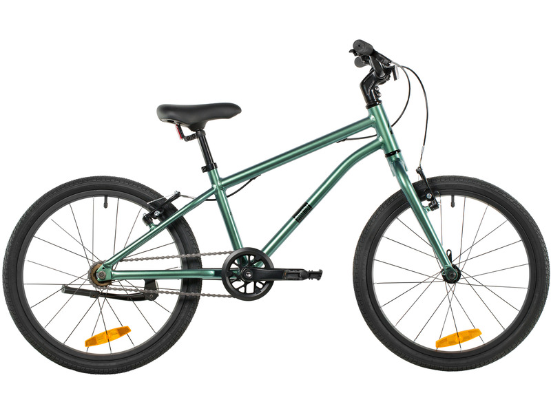 Велосипед, предназначенный для детей в возрасте от пяти до девяти лет, без переключения передач. Технические особенности: легкая алюминиевая рама (скрытая проводка, прямой рулевой стакан, кареточный стакан BSA), жесткая алюминиевая вилка, двойные алюминиевые обода (под ниппель AV), ободные механические тормоза Logan V-brake (алюминиевые рычаги), защита цепи, подножка, звонок, катафоты. Подходит для обучения и прогулочного катания в городских условиях. Диаметр колес - 20 дюймов. Вес - 7,5 кг.