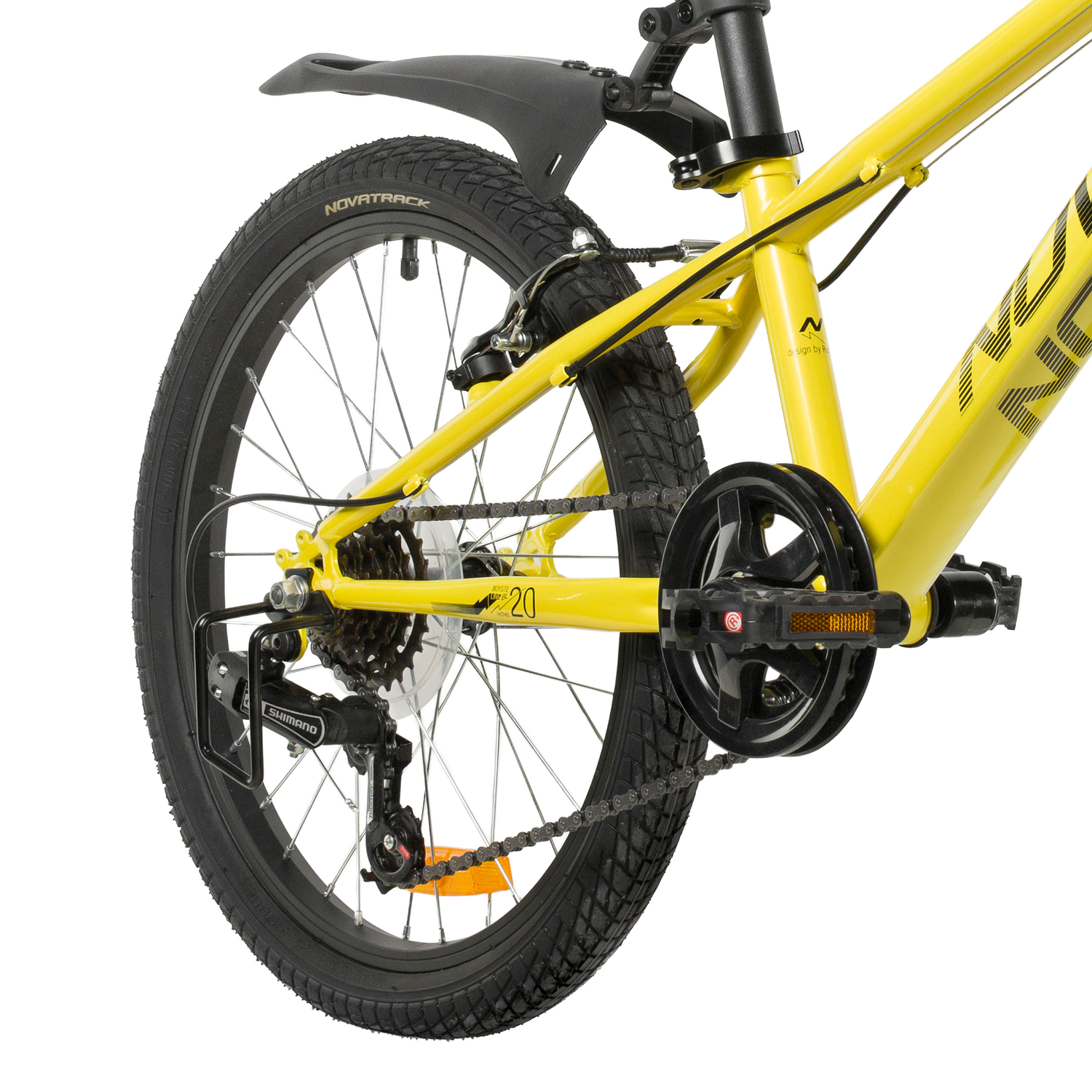 Велосипед, предназначенный для детей в возрасте от пяти до девяти лет, с оборудованием начального класса Shimano, 6 скоростей. Технические особенности: прочная стальная рама (открытая проводка, прямой рулевой стакан, кареточный стакан BSA, крепление калипера IS), амортизационная вилка (крепление под V-brake), двойные алюминиевые обода (под AV ниппель), надежные ободные тормоза Sparkle V-brake (стальные рычаги), пластиковые крылья, защита цепи, защита заднего переключателя, катафоты, звонок, подножка. Подходит для обучения и прогулочного катания в городских условиях. Диаметр колес - 20 дюйма. Вес - 13,4 кг.