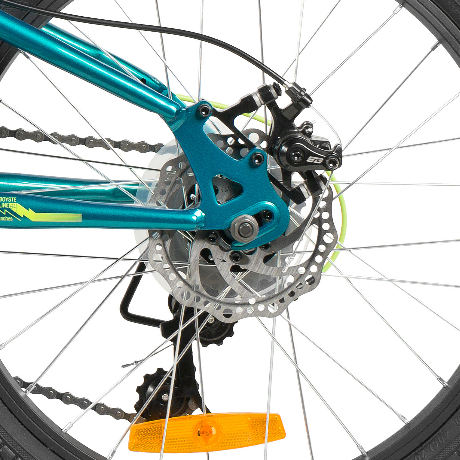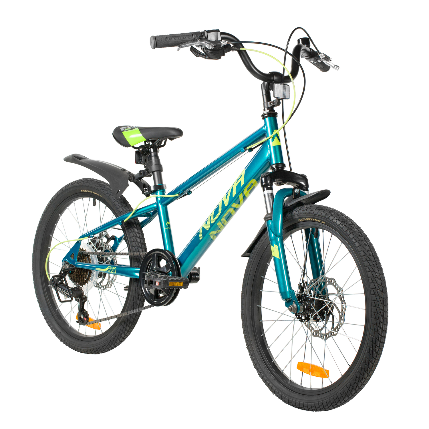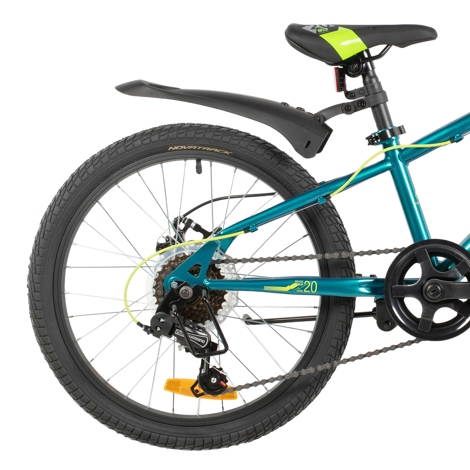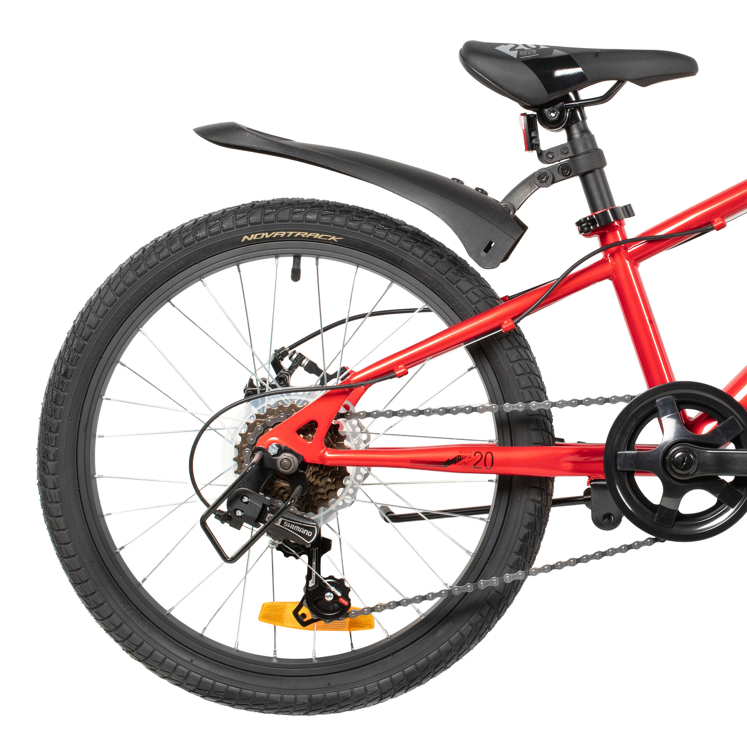 Велосипед, предназначенный для детей в возрасте от пяти до девяти лет, с оборудованием начального класса Shimano, 6 скоростей. Технические особенности: прочная стальная рама (открытая проводка, прямой рулевой стакан, кареточный стакан BSA, крепление калипера IS), амортизационная вилка (крепление калипера IS), двойные алюминиевые обода (под AV ниппель), дисковые механические тормоза STG (роторы 160/140 мм), пластиковые крылья, защита цепи, защита заднего переключателя, катафоты, звонок, подножка. Подходит для обучения и прогулочного катания в городских условиях. Диаметр колес - 20 дюйма. Вес - 13,9 кг.