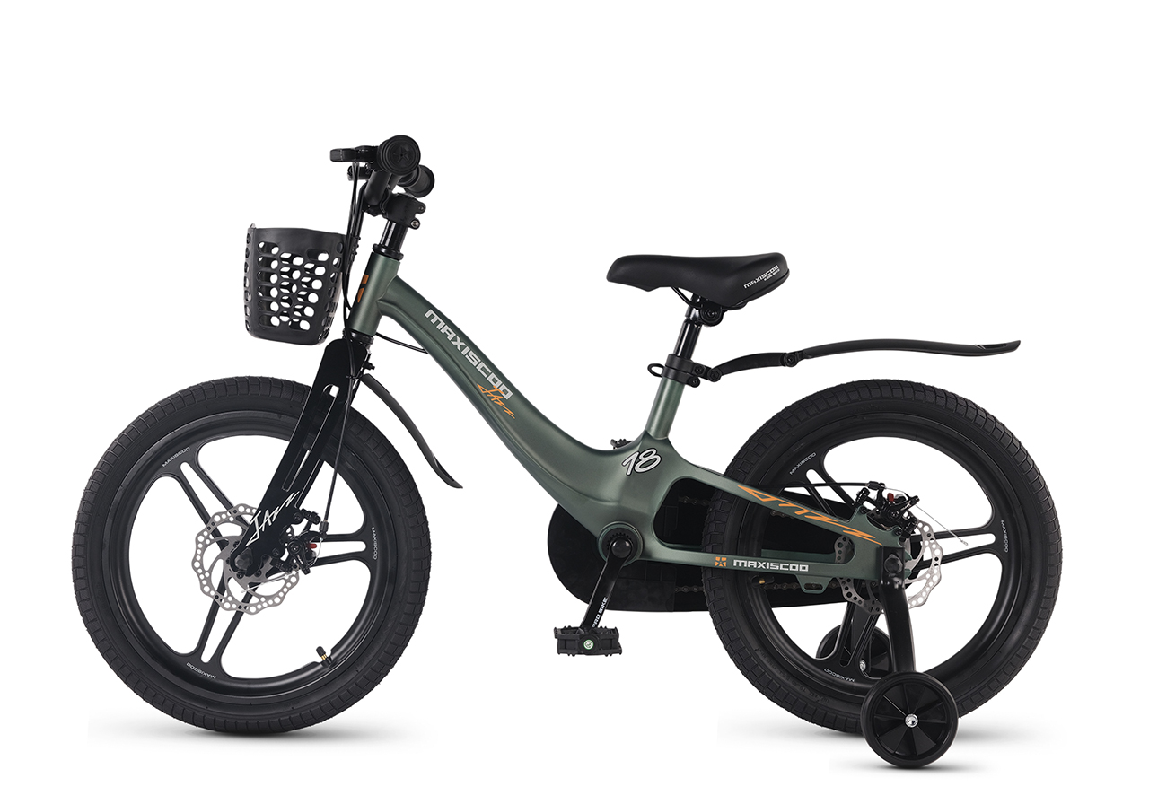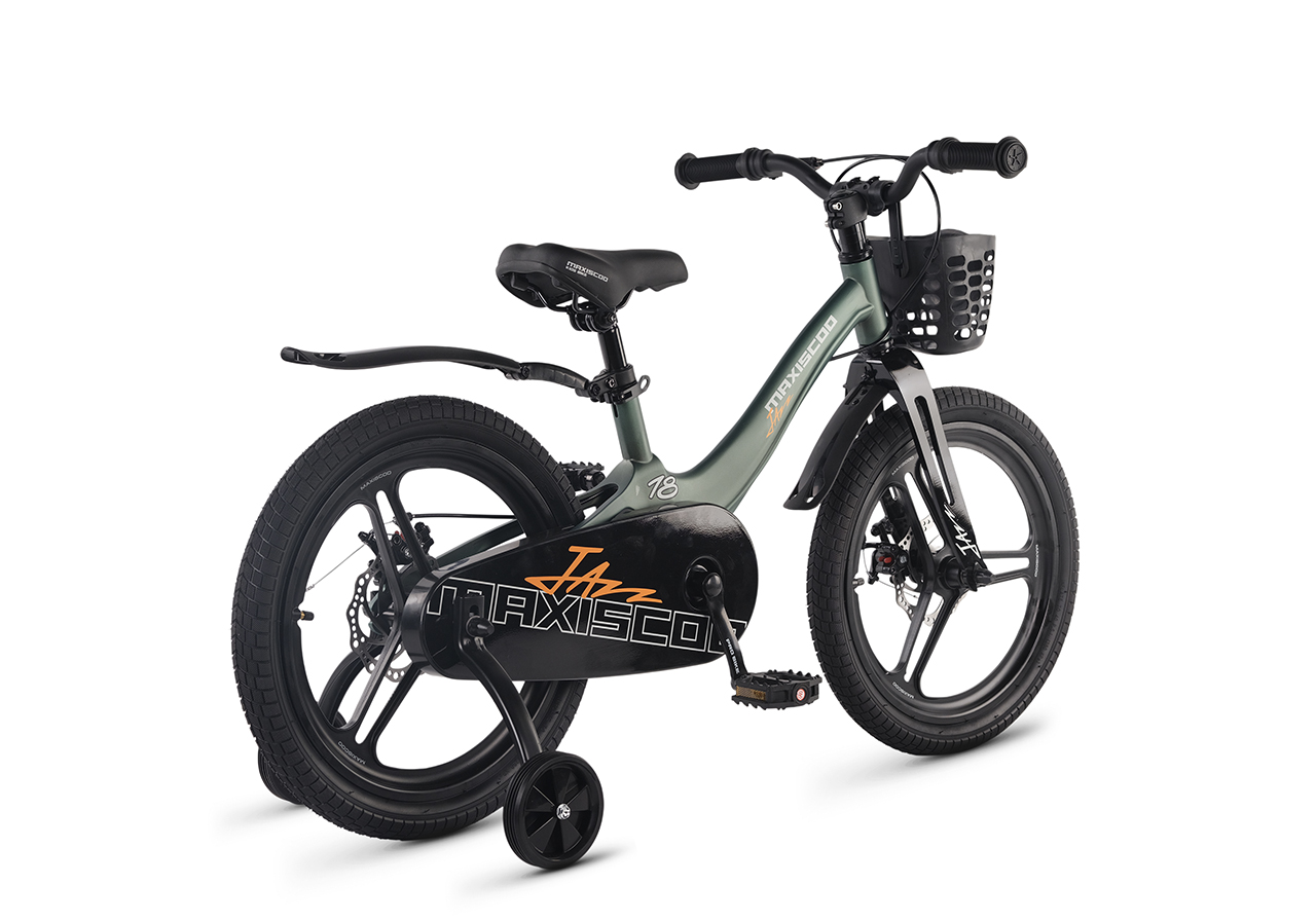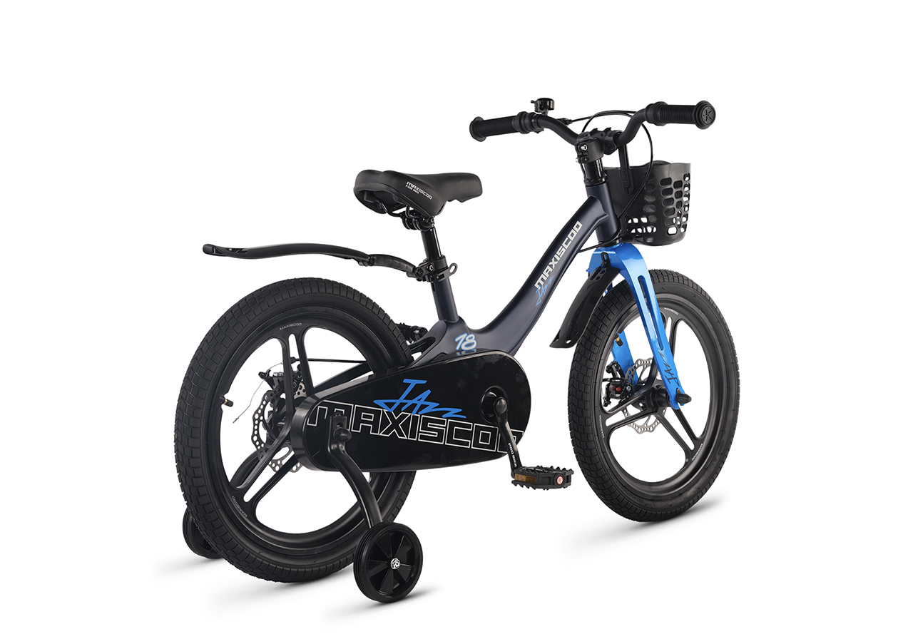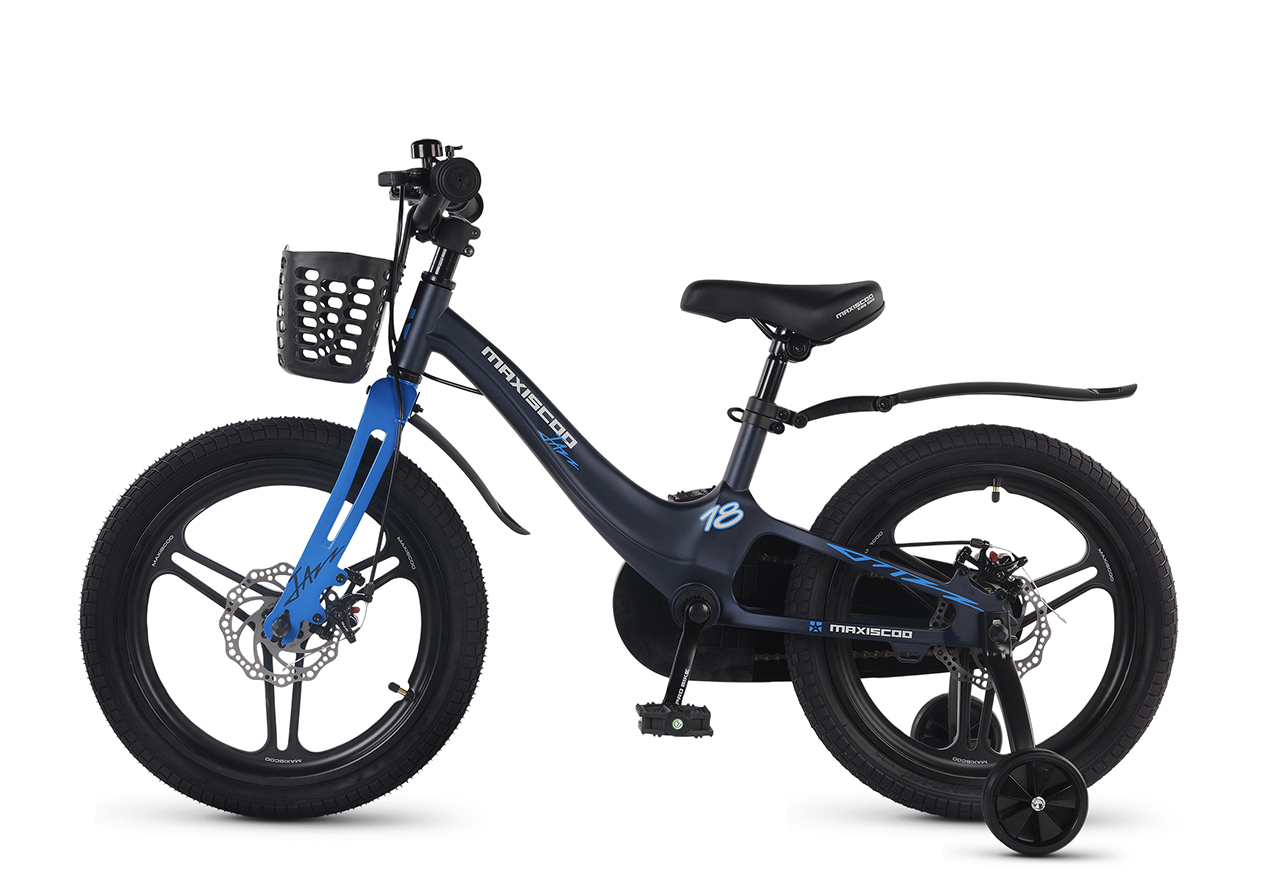 Велосипед, предназначенный для детей в возрасте от четырех до восьми лет, без переключения передач. Технические особенности: легкая рама из магниевого сплава (скрытая проводка, прямой рулевой стакан, крепление калипера IS), жесткая вилка из магниевого сплава (крепление калипера IS), литые колеса из магниевого сплава (трёхлучевые, под ниппель AV), дисковые механические тормоза (роторы 140/140 мм), полная защита цепи, съемные боковые колеса, пластиковые крылья, передняя корзинка, звонок. Максимальная нагрузка - до 40 кг. Подходит для обучения и прогулочного катания в городских условиях. Диаметр колес - 18 дюймов. Вес - 10 кг.