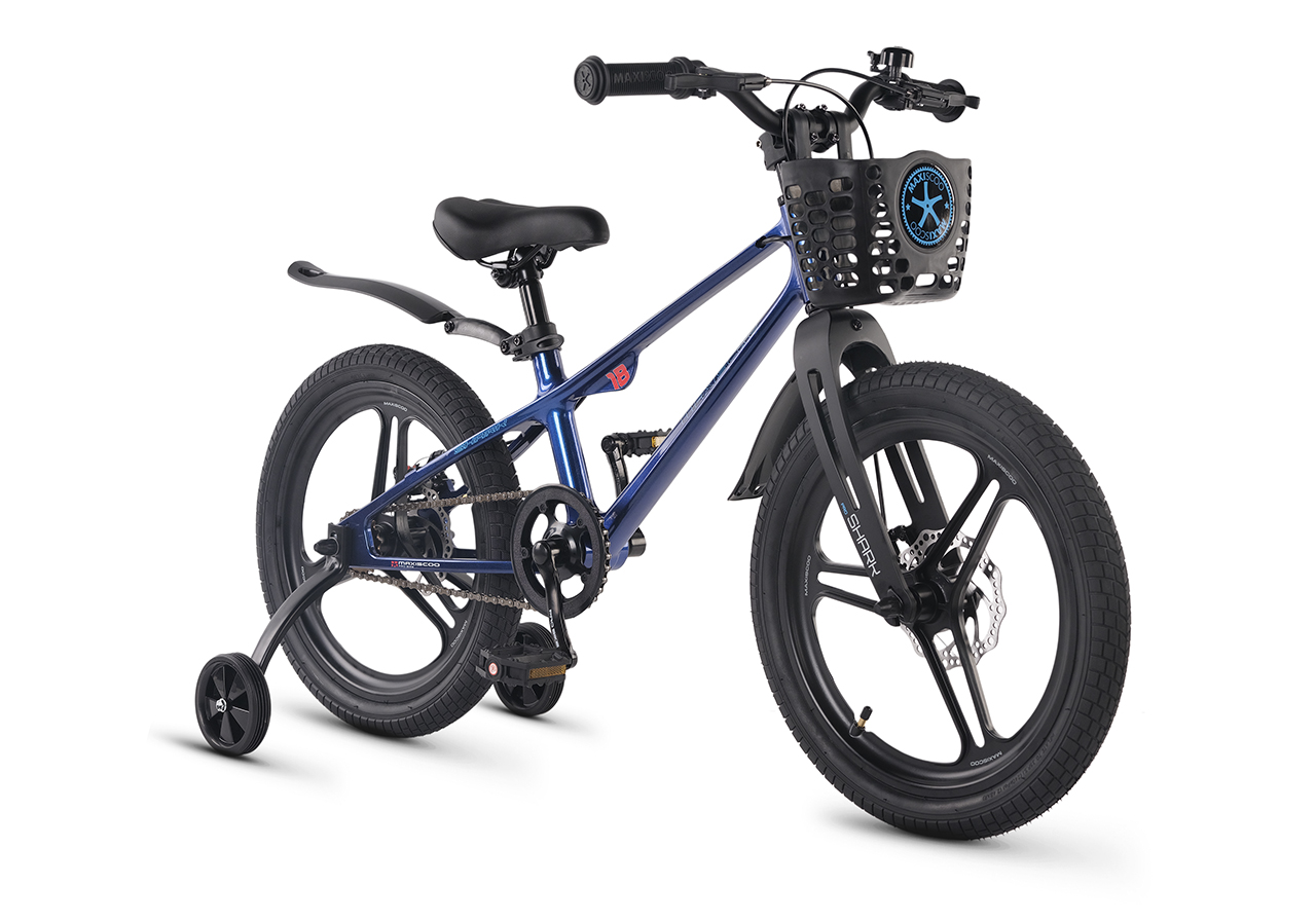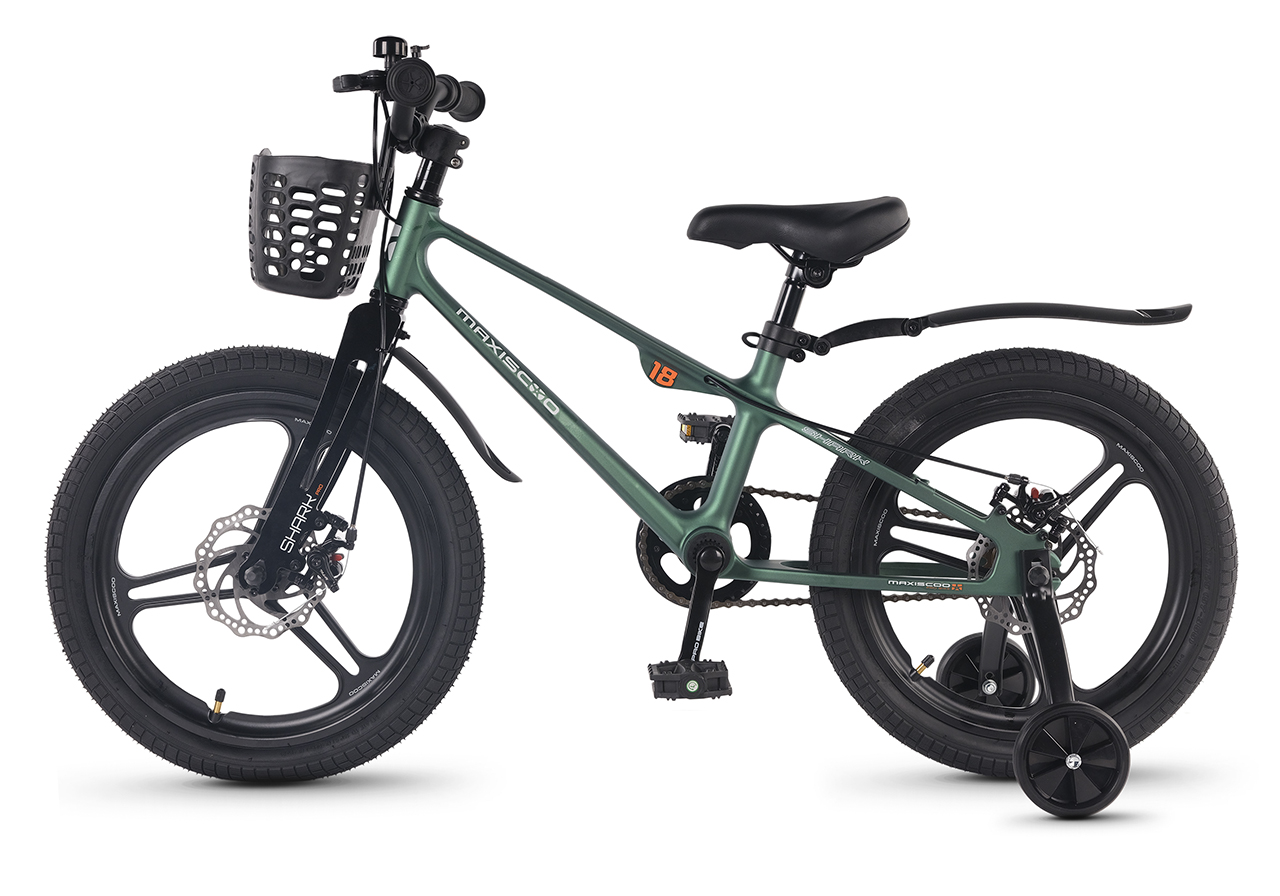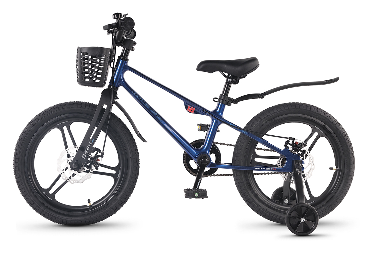 Велосипед, предназначенный для детей в возрасте от четырех до восьми лет, без переключения передач. Технические особенности: легкая рама из магниевого сплава (скрытая проводка, прямой рулевой стакан, крепление калипера IS), жесткая вилка из магниевого сплава (крепление калипера IS), литые колеса из магниевого сплава (трёхлучевые, под ниппель AV), дисковые механические тормоза (роторы 140/140 мм), защита цепи, съемные боковые колеса, пластиковые крылья, передняя корзинка. Максимальная нагрузка - до 40 кг. Подходит для обучения и прогулочного катания в городских условиях. Диаметр колес - 18 дюймов. Вес - 10 кг.