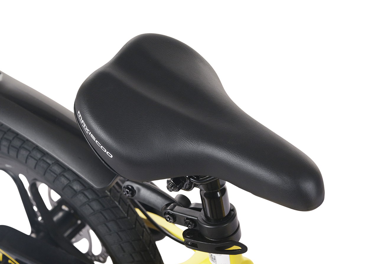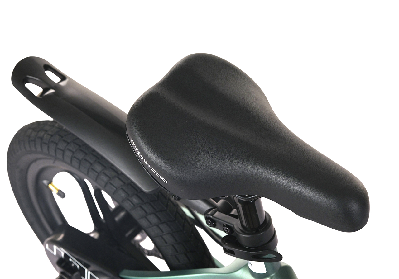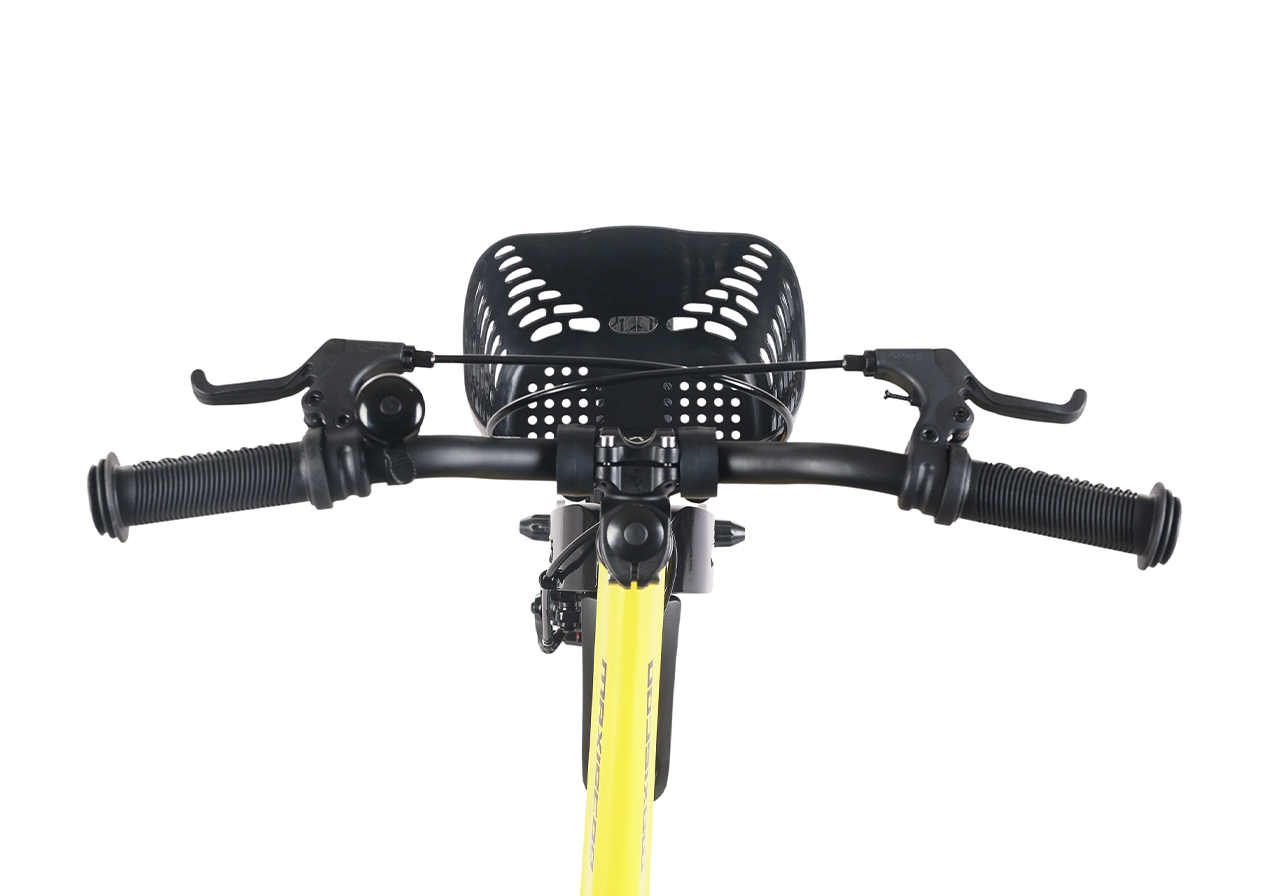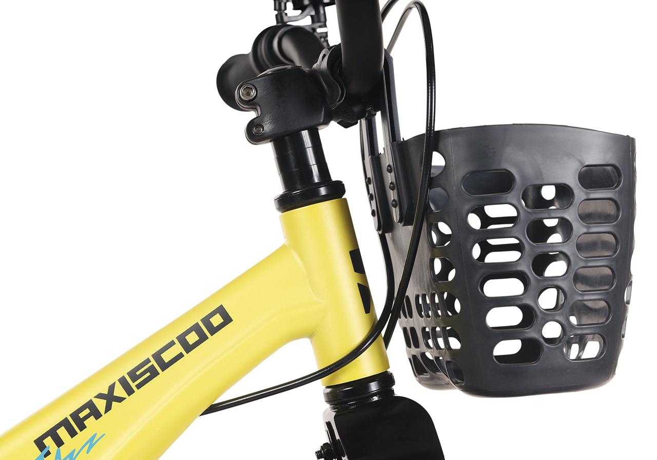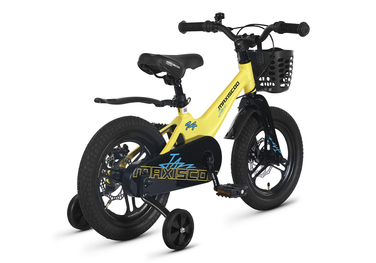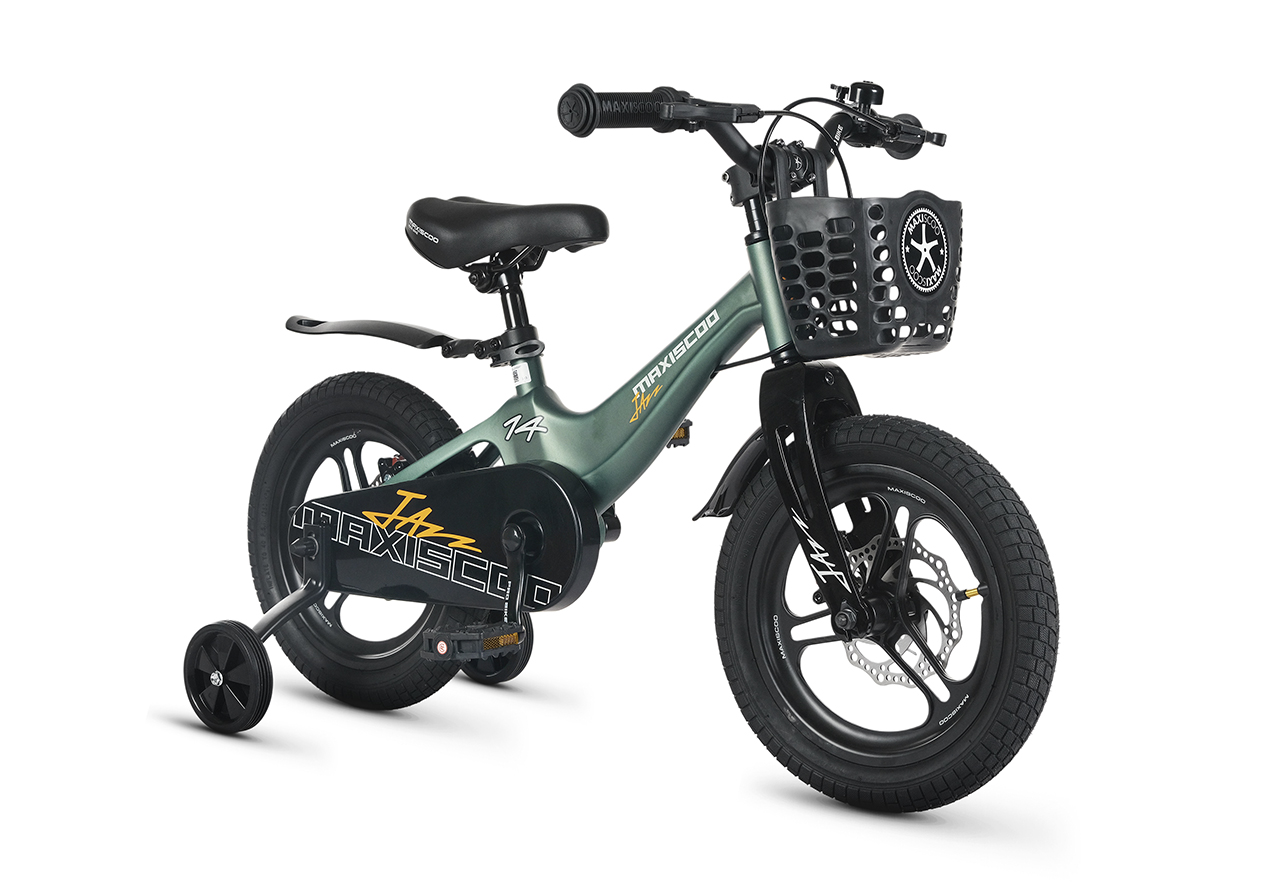 Велосипед, предназначенный для детей в возрасте от двух до четырех лет, без переключения передач. Технические особенности: легкая рама из магниевого сплава (скрытая проводка, прямой рулевой стакан, крепление калипера IS), жесткая вилка из магниевого сплава (крепление калипера IS), литые колеса из магниевого сплава (трёхлучевые, под ниппель AV), дисковые механические тормоза (роторы 140/140 мм), полная защита цепи, съемные боковые колеса, пластиковые крылья, передняя корзинка, звонок. Максимальная нагрузка - до 40 кг. Подходит для обучения и прогулочного катания в городских условиях. Диаметр колес - 14 дюймов. Вес - 8,4 кг.