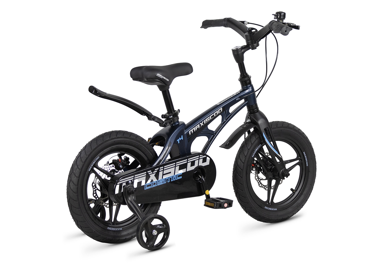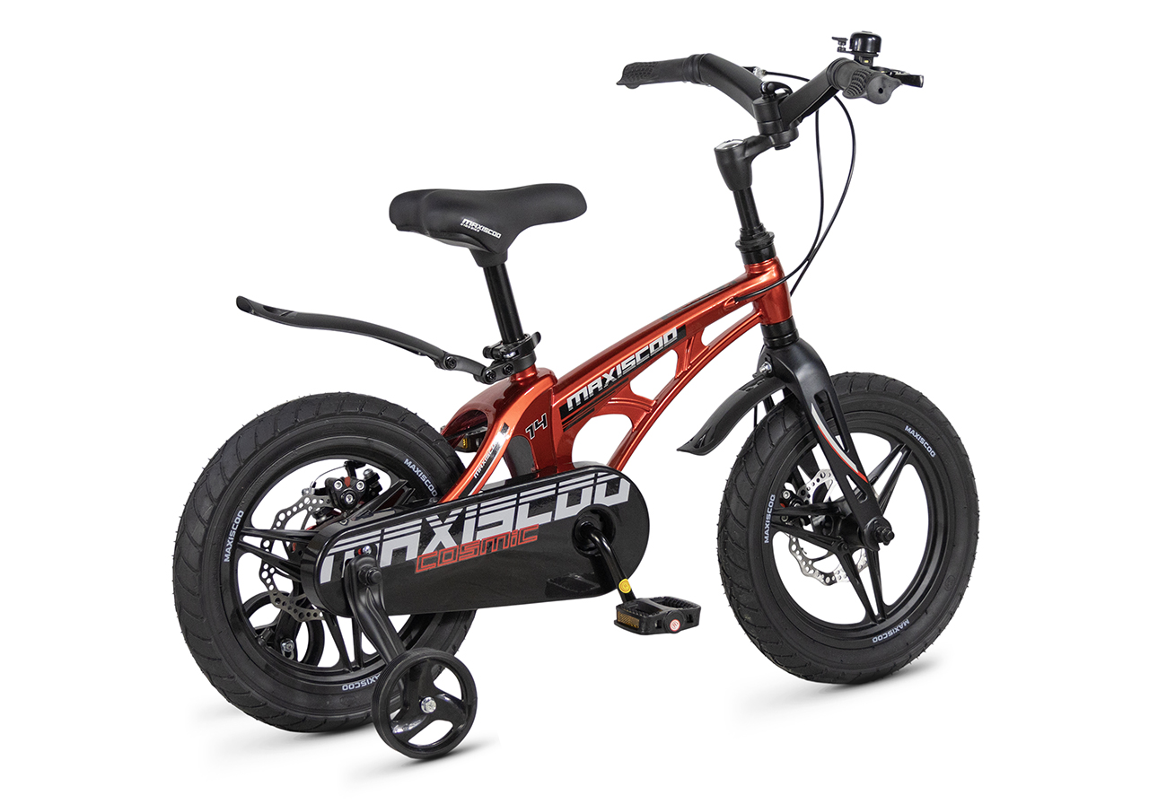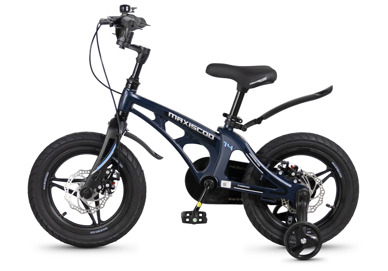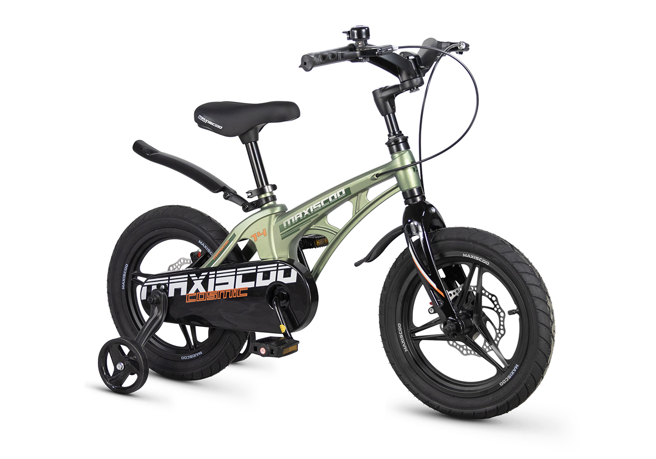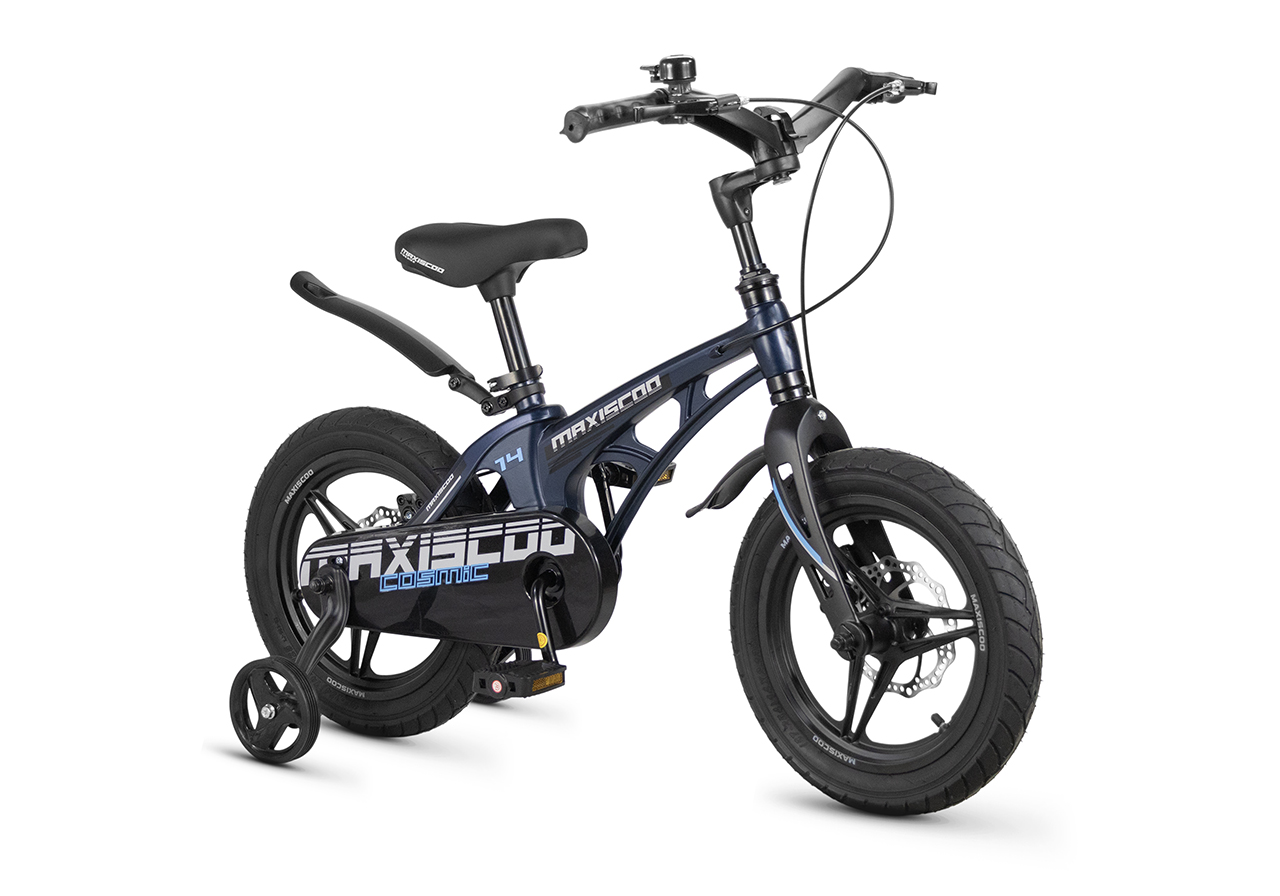 Велосипед, предназначенный для детей в возрасте от двух до четырех лет, без переключения передач. Технические особенности: легкая рама из магниевого сплава (скрытая проводка, прямой рулевой стакан, крепление калипера IS), жесткая вилка из магниевого сплава (крепление калипера IS), литые колеса из магниевого сплава (трёхлучевые, под ниппель AV), дисковые механические тормоза (роторы 140/140 мм), полная защита цепи, съемные боковые колеса, пластиковые крылья, звонок. Максимальная нагрузка - до 40 кг. Подходит для обучения и прогулочного катания в городских условиях. Диаметр колес - 14 дюймов. Вес - 7,6 кг.