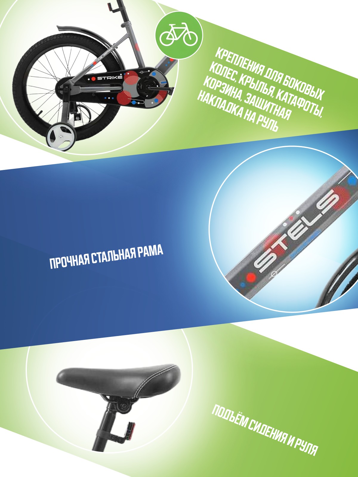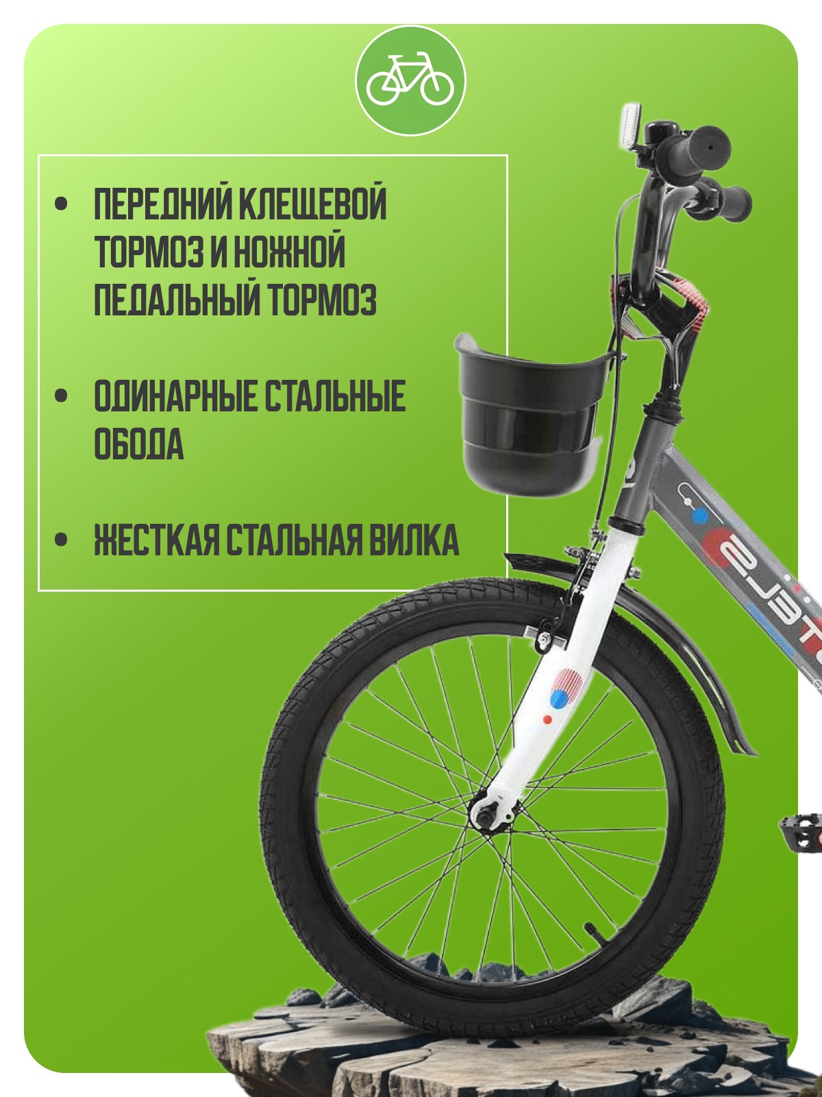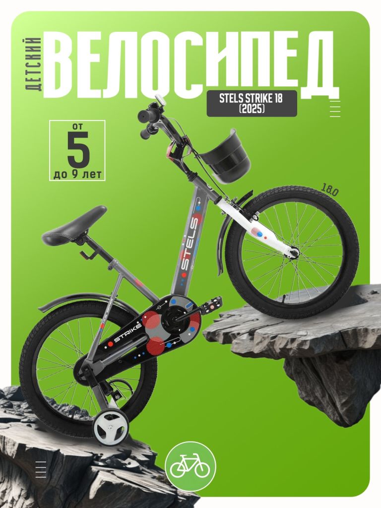 Велосипед, предназначенный для детей в возрасте от четырех до восьми лет, без переключения передач. Технические особенности: прочная стальная рама, жесткая стальная вилка, одинарные стальные обода (под ниппель AV), передний клещевой тормоз и ножной педальный тормоз, съемные боковые колеса, полная защита цепи, крылья, передняя корзинка, катафоты, звонок. Подходит для обучения и прогулочного катания в городских условиях. Диаметр колес - 18 дюймов. Вес - 13 кг.