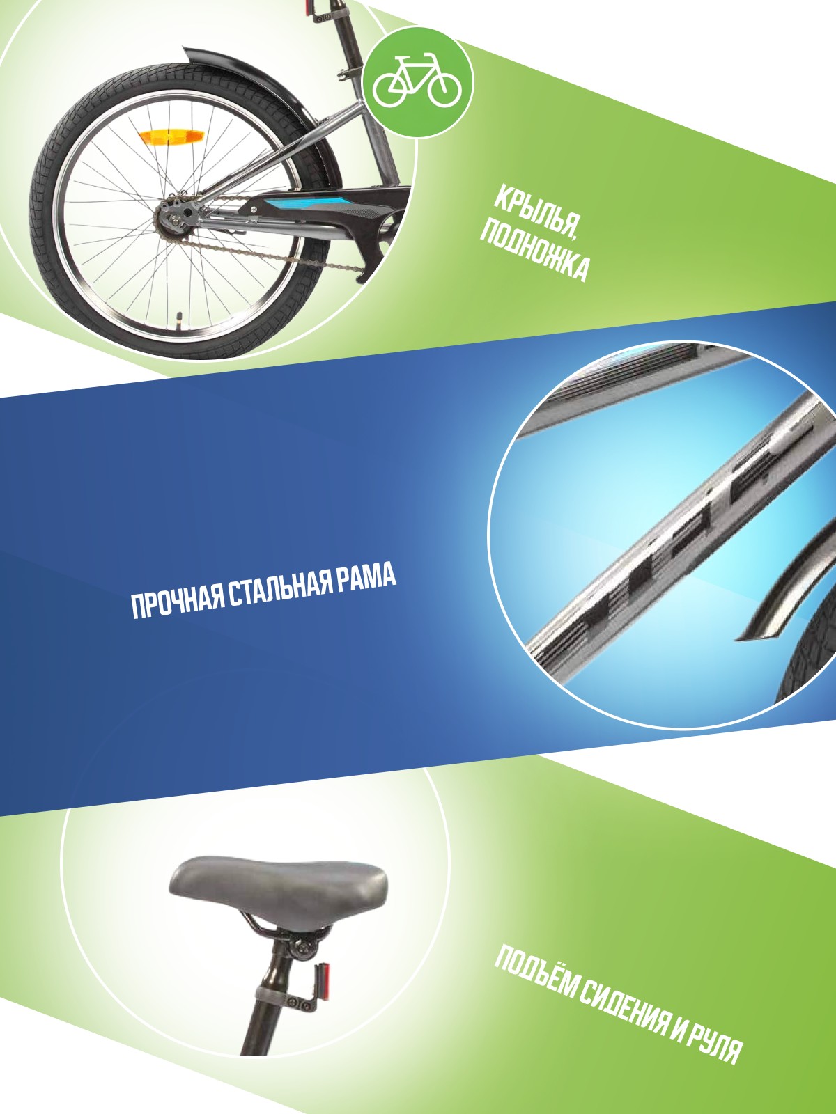 Особенности велосипеда: Защита цепи, Звонок, Крылья, Подножка.
