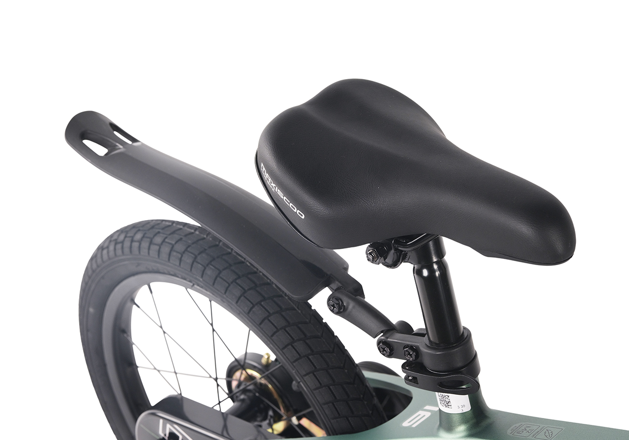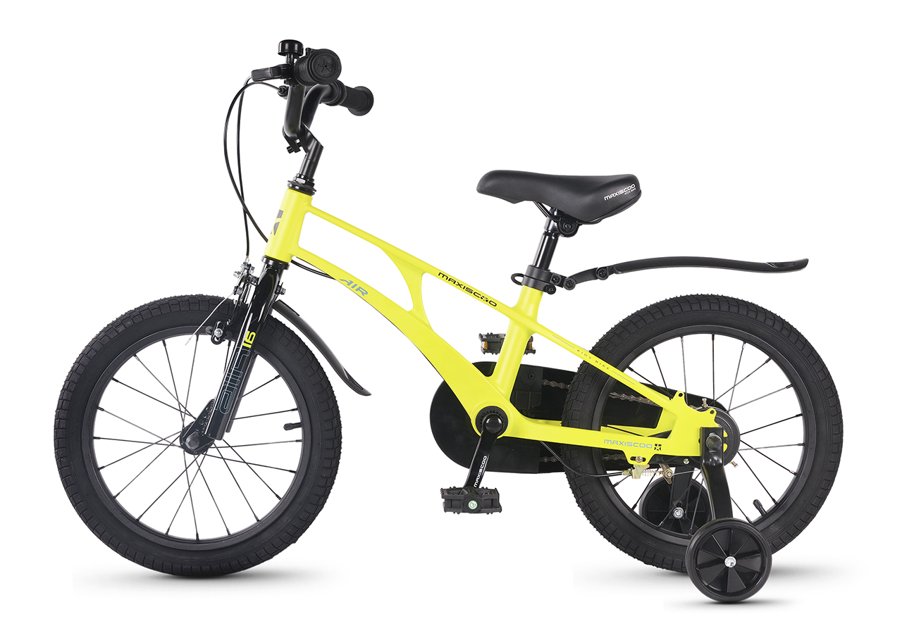 Велосипед, предназначенный для детей в возрасте от трех до шести лет, без переключения передач. Технические особенности: легкая рама из магниевого сплава (скрытая проводка, прямой рулевой стакан, крепление калипера IS), жесткая стальная вилка, одинарные алюминиевые обода (под ниппель AV), передний тормоз - ободной клещевой U-brake, задний тормоз - ножной, полная защита цепи, съемные боковые колеса, звонок. Максимальная нагрузка - до 40 кг. Подходит для обучения и прогулочного катания в городских условиях. Диаметр колес - 16 дюймов. Вес - 9,1 кг.