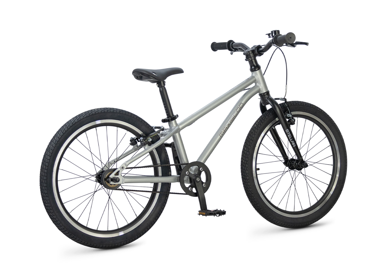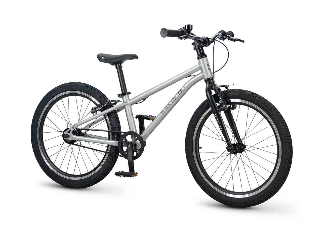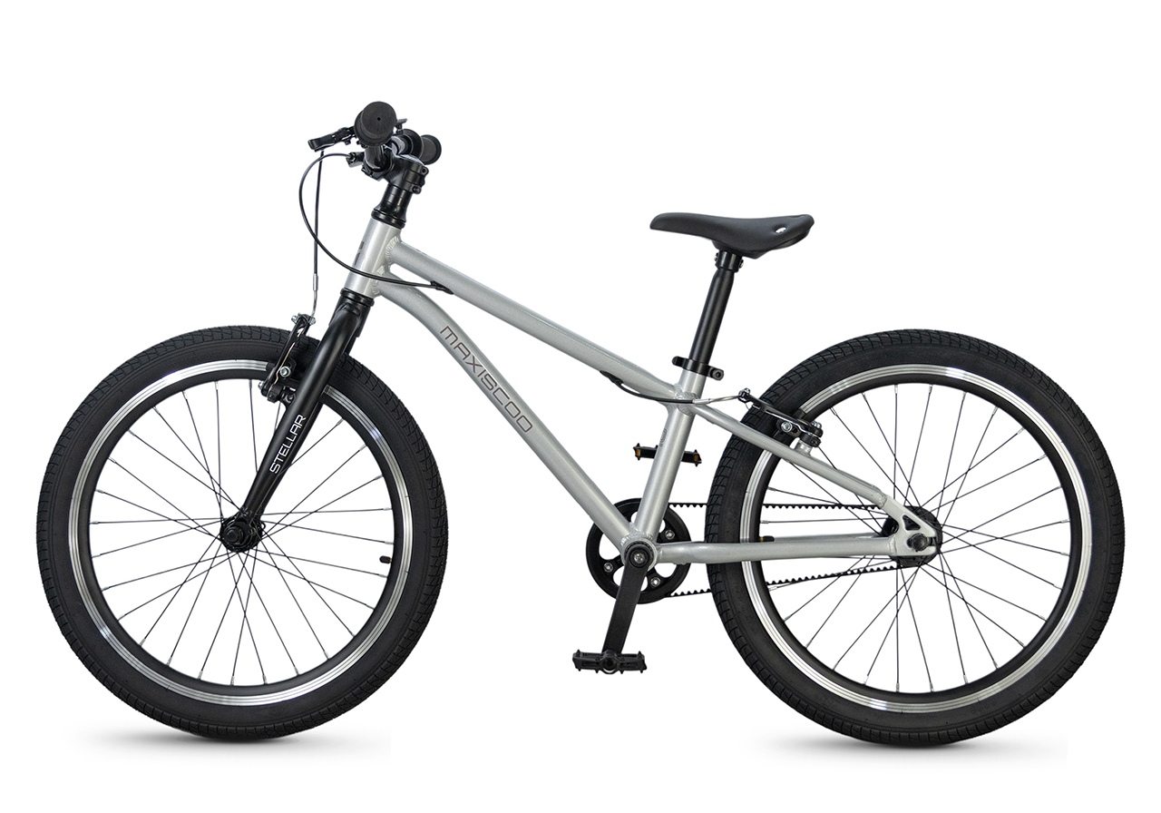 Велосипед, предназначенный для детей в возрасте от пяти до девяти лет, без переключения передач. Технические особенности: легкая алюминиевая рама (сплав 6061, скрытая проводка, прямой рулевой стакан, кареточный стакан BSA, горизонтальные дропауты), жесткая алюминиевая вилка (крепление под V-brake), двойные алюминиевые обода (под ниппель AV), надежные ободные тормоза типа V-brake, ременной привод, защита цепи, звонок. Максимальная нагрузка - до 50 кг. Подходит для обучения и прогулочного катания в городских условиях. Диаметр колес - 20 дюймов. Вес - 7,8 кг.