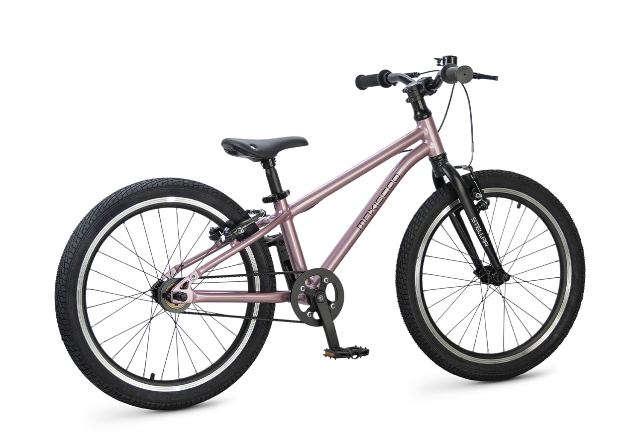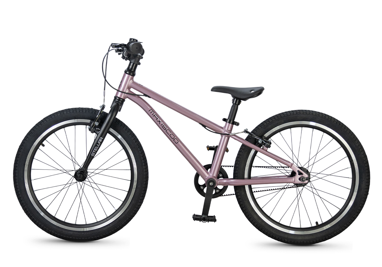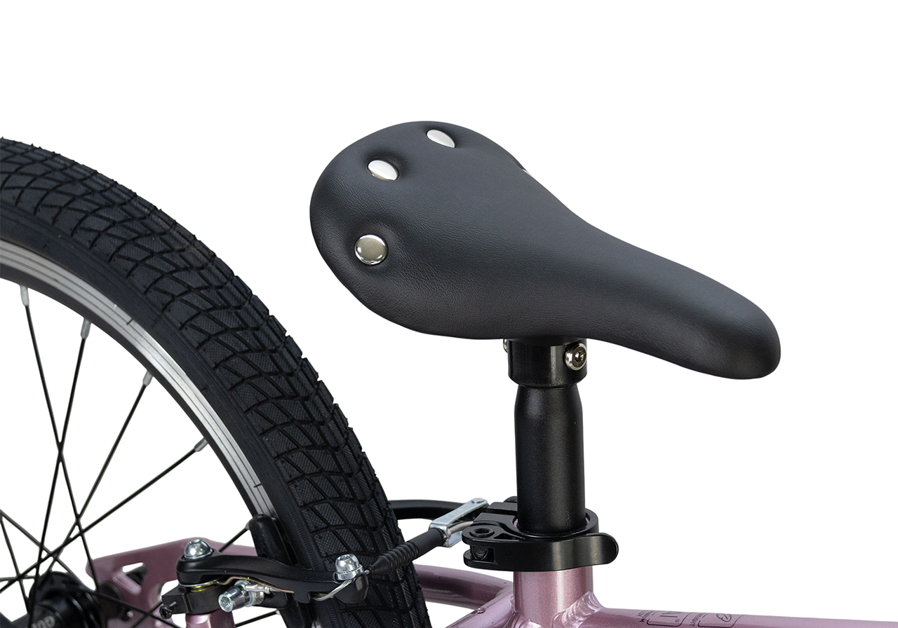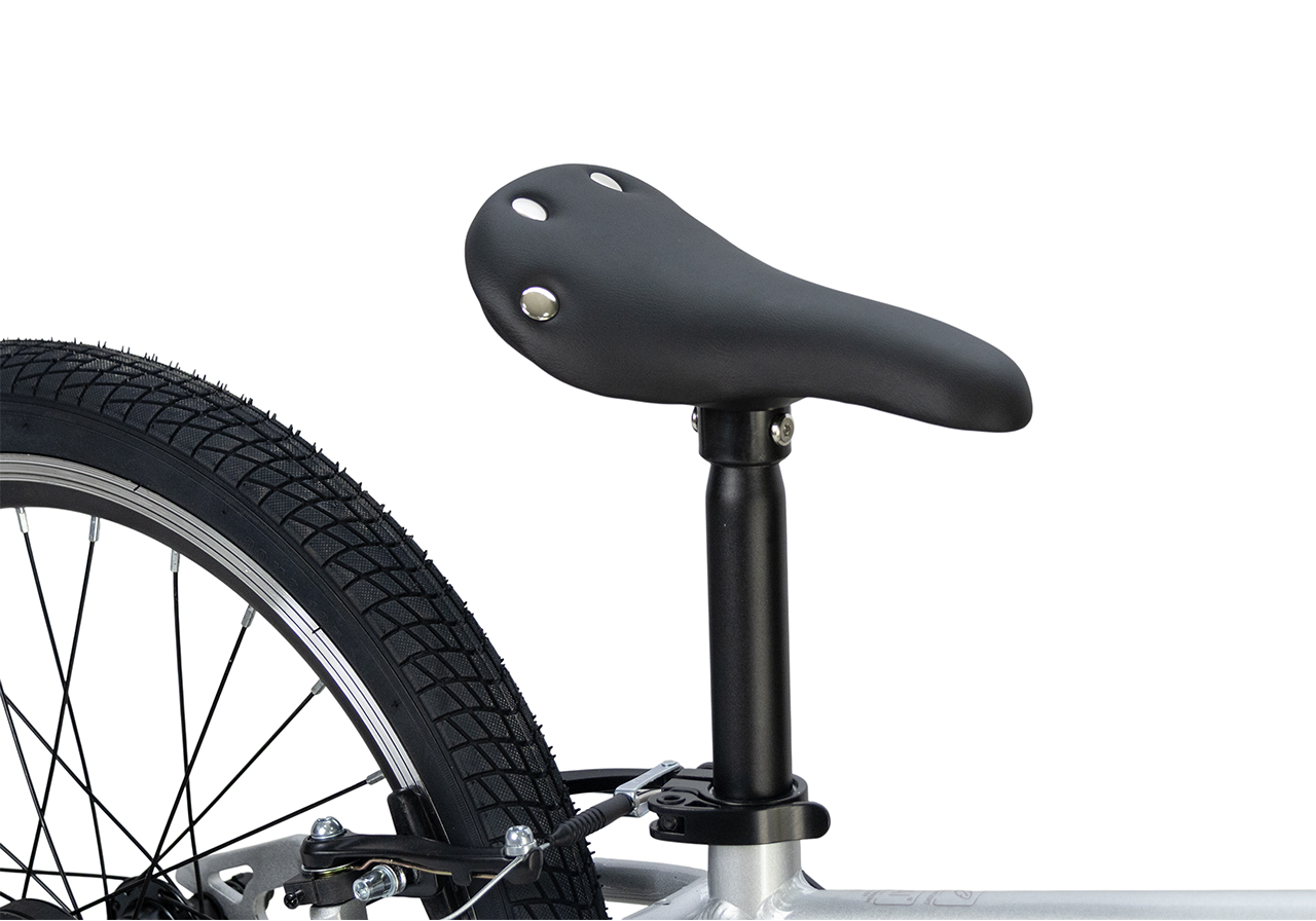 Велосипед, предназначенный для детей в возрасте от пяти до девяти лет, без переключения передач. Технические особенности: легкая алюминиевая рама (сплав 6061, скрытая проводка, прямой рулевой стакан, кареточный стакан BSA, горизонтальные дропауты), жесткая алюминиевая вилка (крепление под V-brake), двойные алюминиевые обода (под ниппель AV), надежные ободные тормоза типа V-brake, ременной привод, защита цепи, звонок. Максимальная нагрузка - до 50 кг. Подходит для обучения и прогулочного катания в городских условиях. Диаметр колес - 20 дюймов. Вес - 7,8 кг.