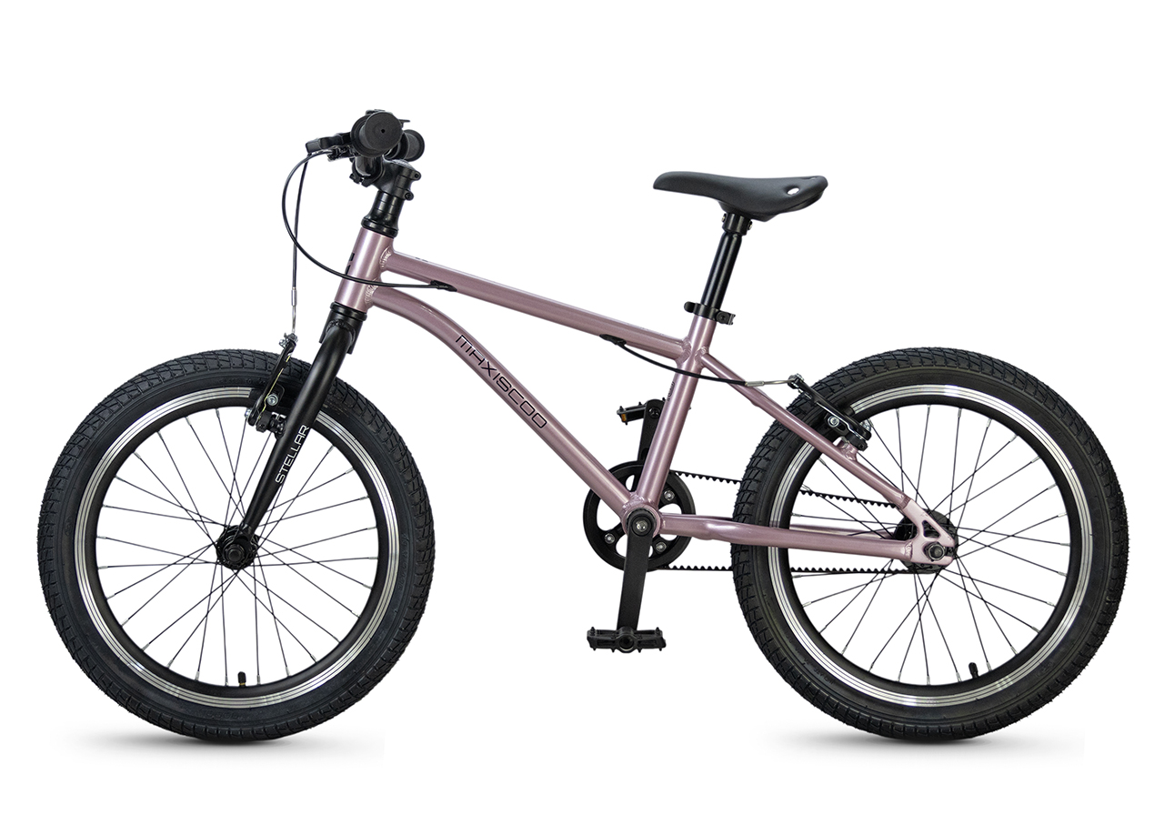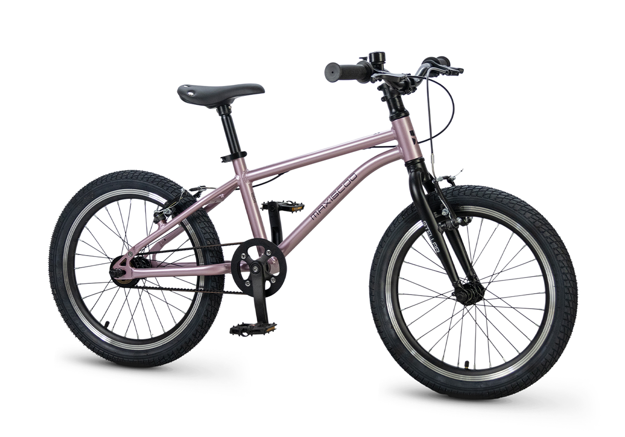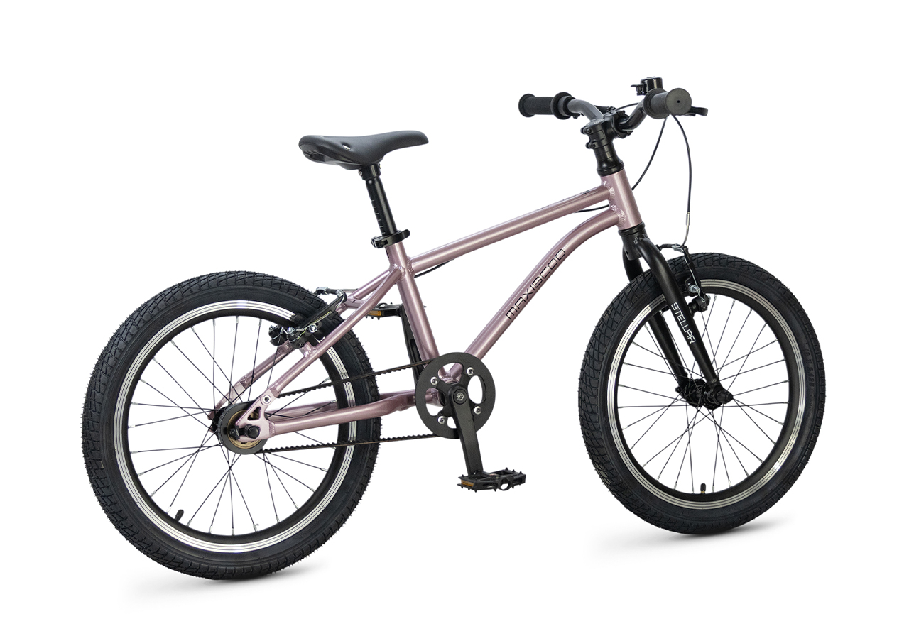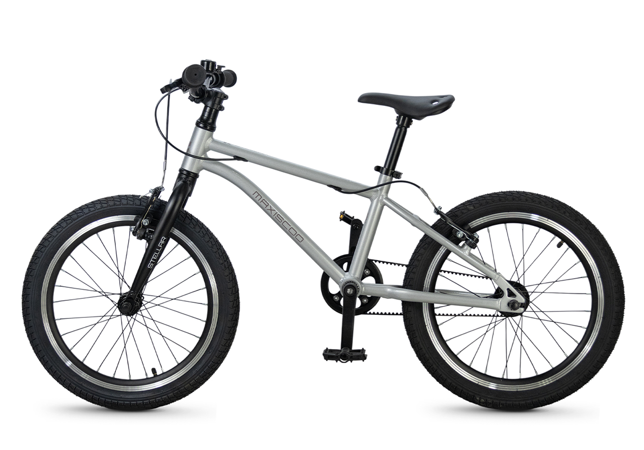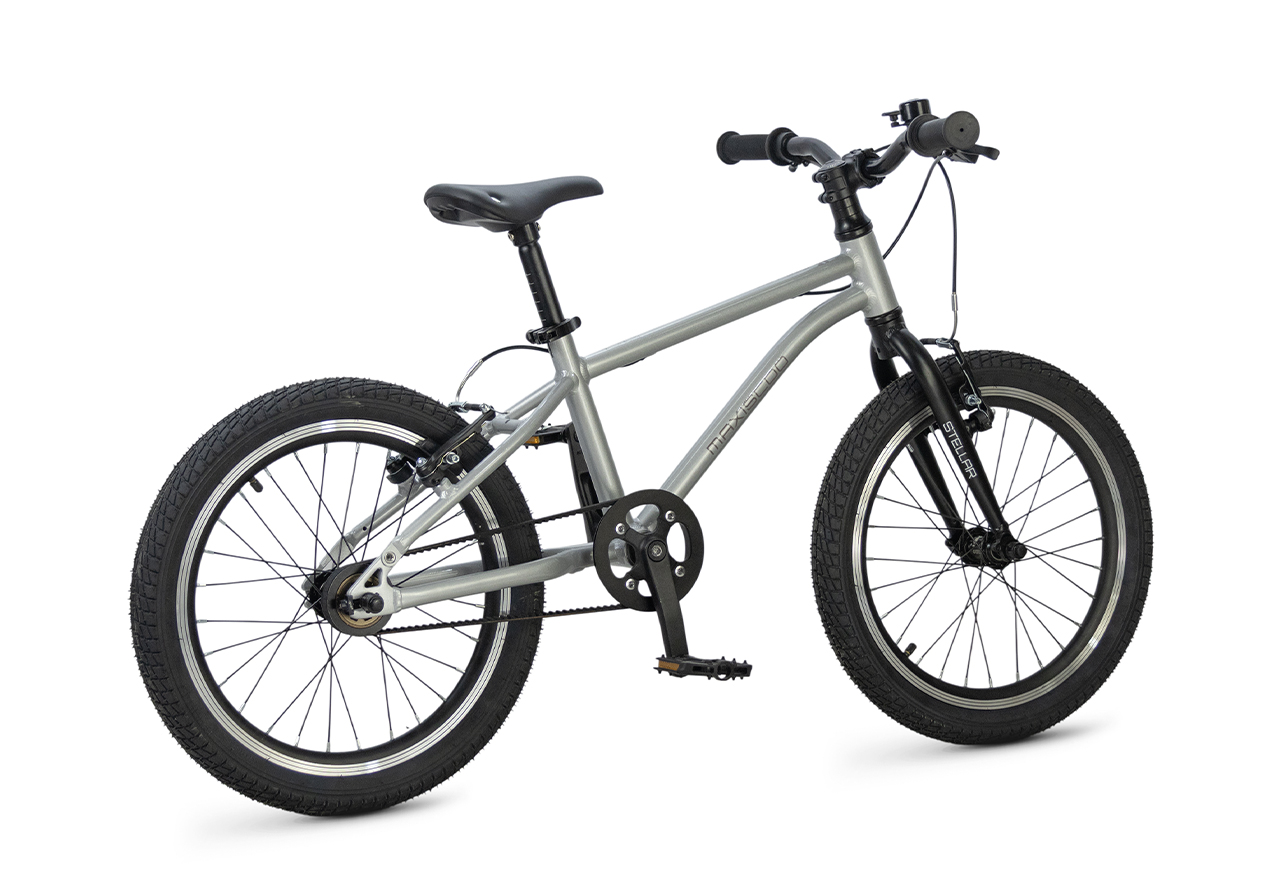 Велосипед, предназначенный для детей в возрасте от четырех до восьми лет, без переключения передач. Технические особенности: легкая алюминиевая рама (сплав 6061, скрытая проводка, прямой рулевой стакан, кареточный стакан BSA, горизонтальные дропауты), жесткая алюминиевая вилка (крепление под V-brake), двойные алюминиевые обода (под ниппель AV), надежные ободные тормоза типа V-brake, ременной привод, защита цепи, звонок. Максимальная нагрузка - до 40 кг. Подходит для обучения и прогулочного катания в городских условиях. Диаметр колес - 18 дюймов. Вес - 7,2 кг.