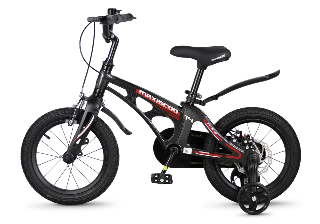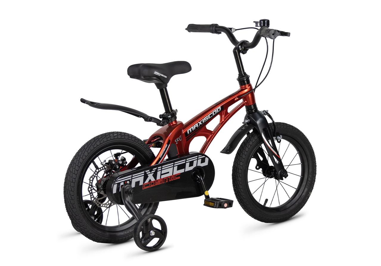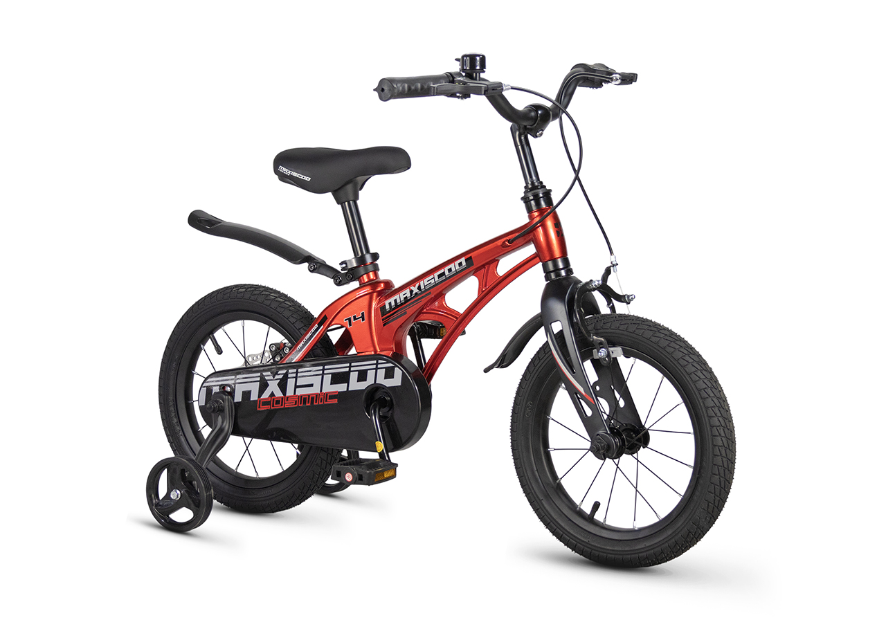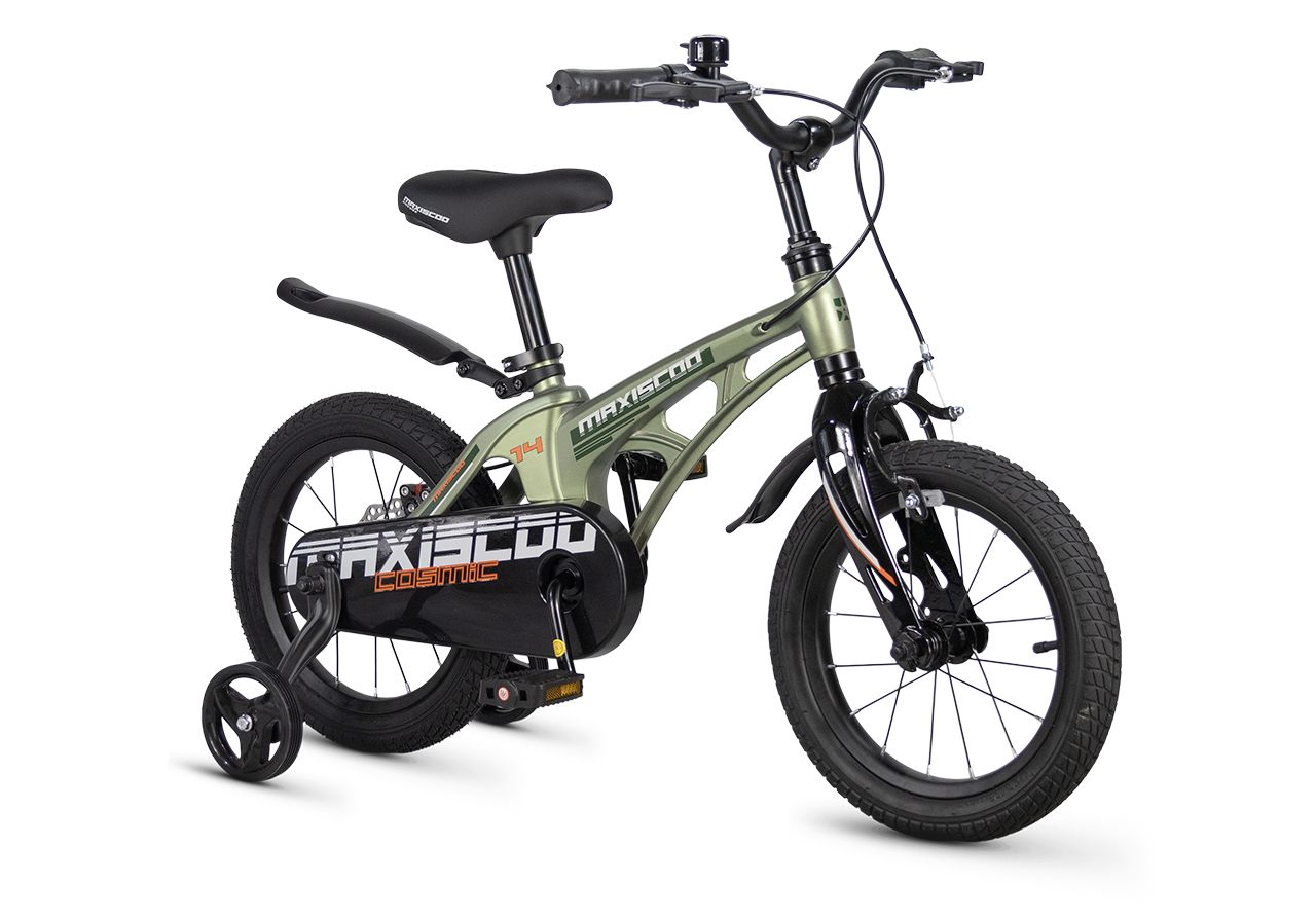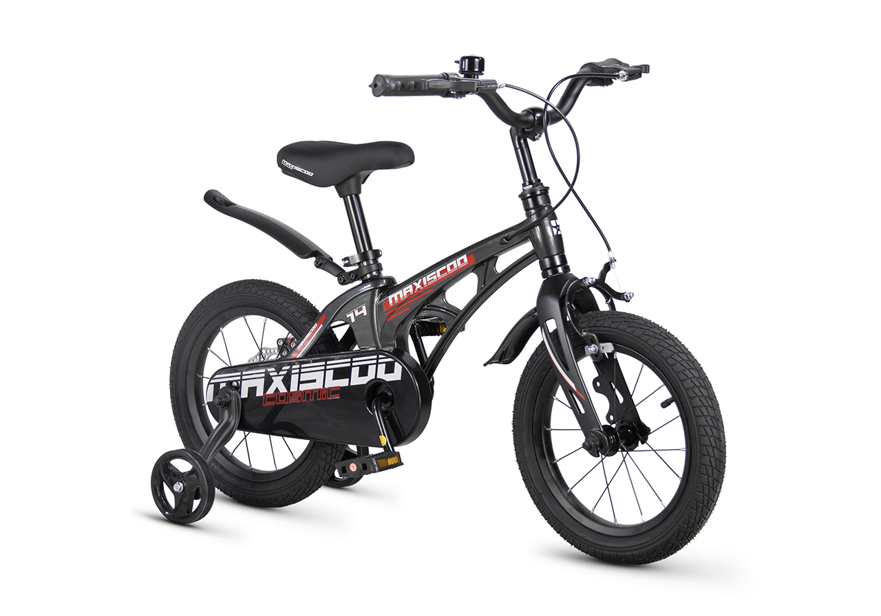 Велосипед, предназначенный для детей в возрасте от двух до четырех лет, без переключения передач. Технические особенности: легкая рама из магниевого сплава (скрытая проводка, прямой рулевой стакан, крепление калипера IS), жесткая вилка из магниевого сплава (крепление калипера IS), одинарные алюминиевые обода (под ниппель AV), передний тормоз - ободной клещевой типа U-brake, задний тормоз - дисковый механический (ротор 140 мм), полная защита цепи, съемные боковые колеса, крылья, звонок. Максимальная нагрузка - до 40 кг. Подходит для обучения и прогулочного катания в городских условиях. Диаметр колес - 14 дюймов. Вес - 7,5 кг.