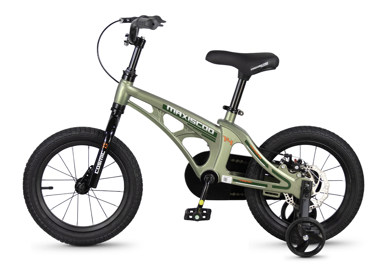 Велосипед, предназначенный для детей в возрасте от двух до четырех лет, без переключения передач. Технические особенности: легкая рама из магниевого сплава (скрытая проводка, прямой рулевой стакан, крепление калипера IS), жесткая стальная вилка, одинарные алюминиевые обода (под ниппель AV), задний дисковый механический тормоз (ротор 140 мм), полная защита цепи, съемные боковые колеса. Максимальная нагрузка - до 40 кг. Подходит для обучения и прогулочного катания в городских условиях. Диаметр колес - 14 дюймов. Вес - 7,5 кг.