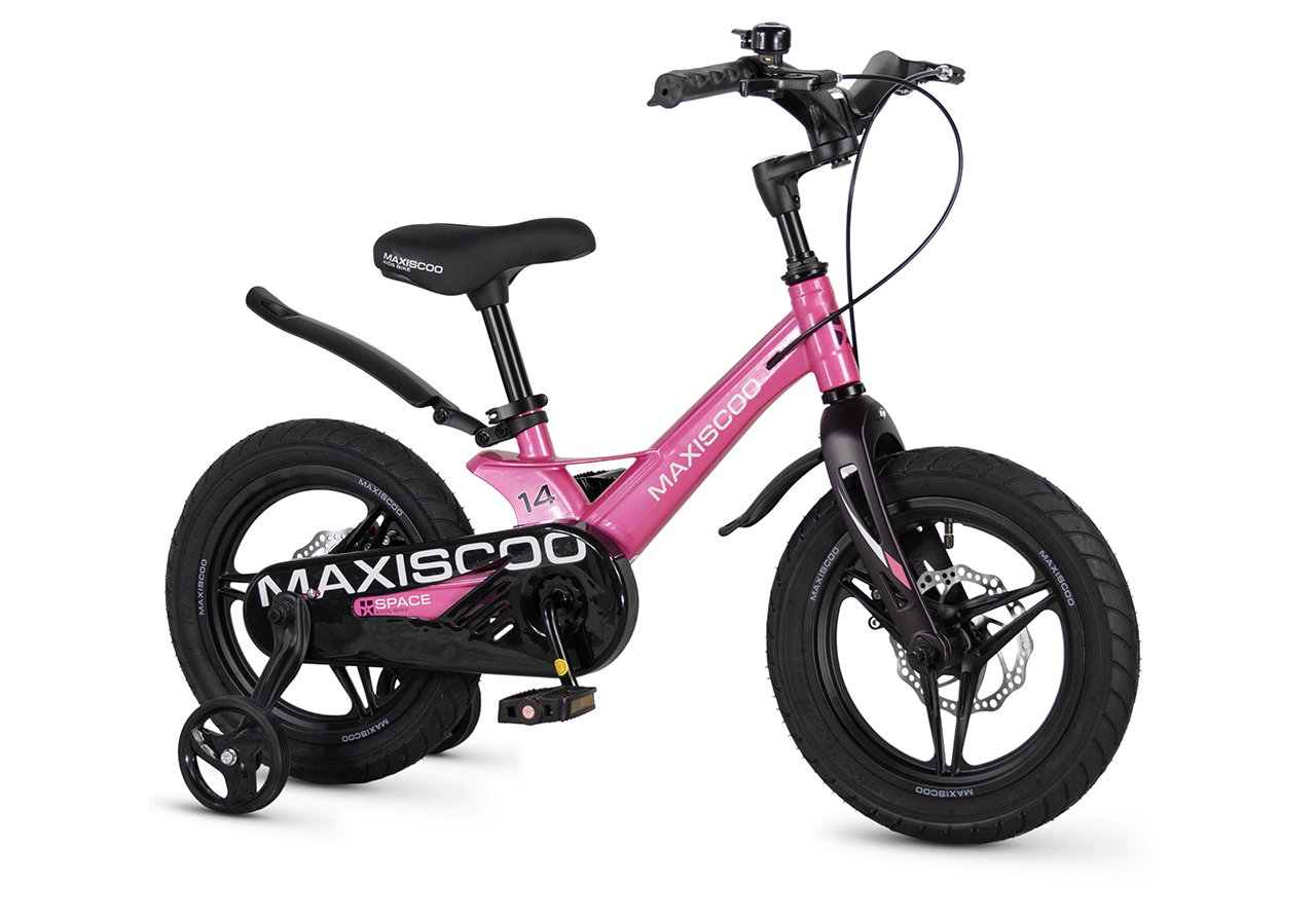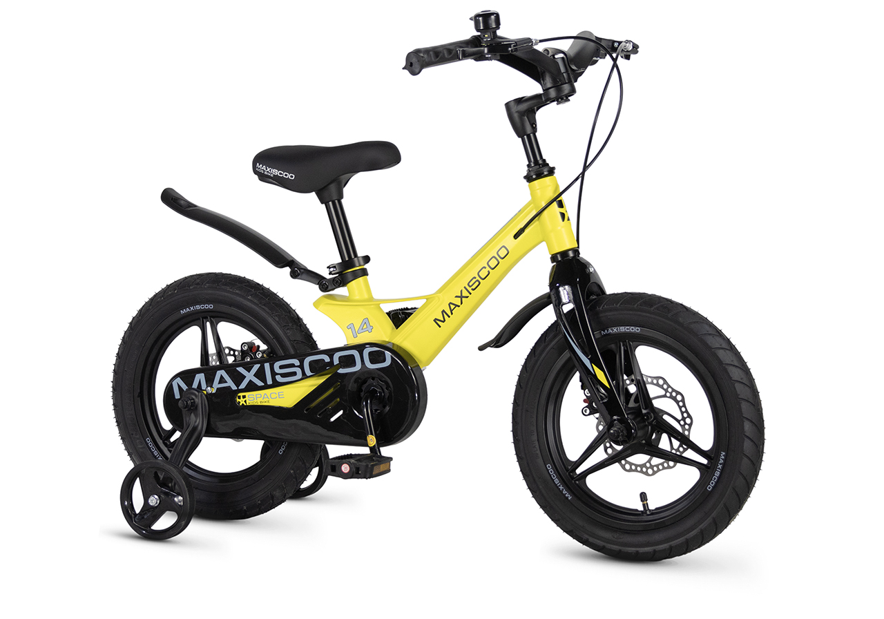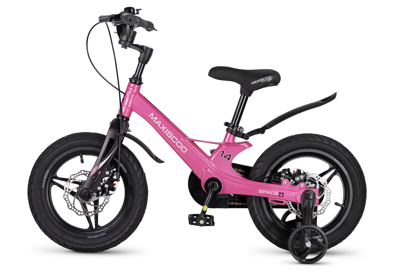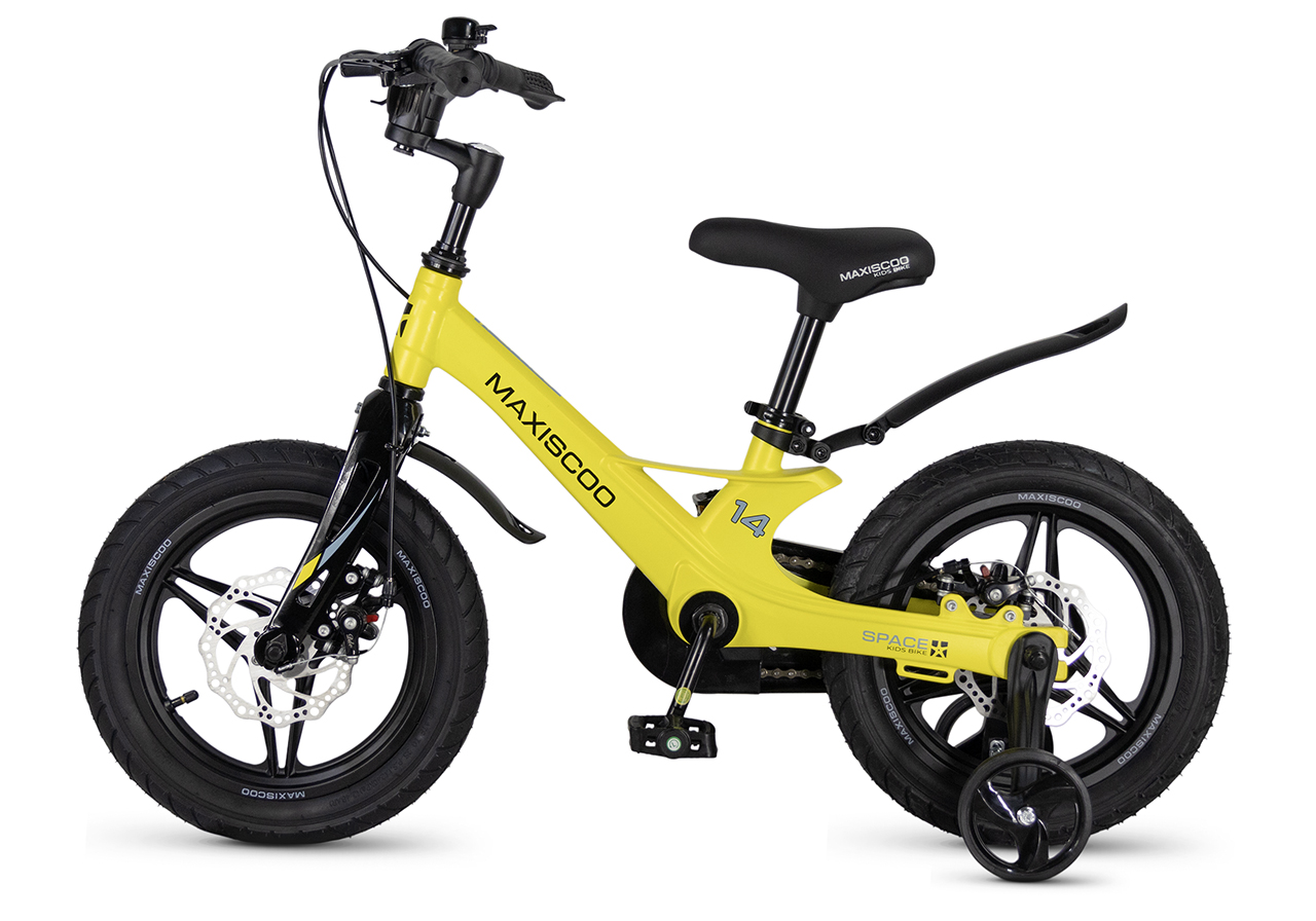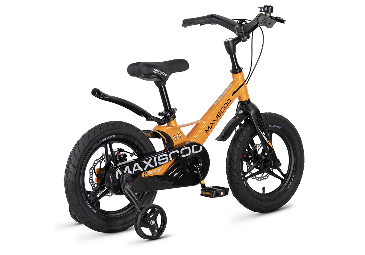 Велосипед, предназначенный для детей в возрасте от двух до четырех лет, без переключения передач. Технические особенности: легкая рама из магниевого сплава (скрытая проводка, прямой рулевой стакан, крепление калипера IS), жесткая вилка из магниевого сплава (крепление калипера IS), литые колеса из магниевого сплава (трёхлучевые, под ниппель AV), дисковые механические тормоза (роторы 140/140 мм), полная защита цепи, съемные боковые колеса, пластиковые крылья, звонок. Максимальная нагрузка - до 40 кг. Подходит для обучения и прогулочного катания в городских условиях. Диаметр колес - 14 дюймов. Вес - 7,4 кг.