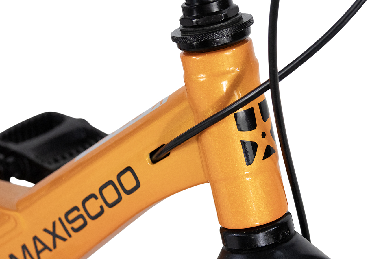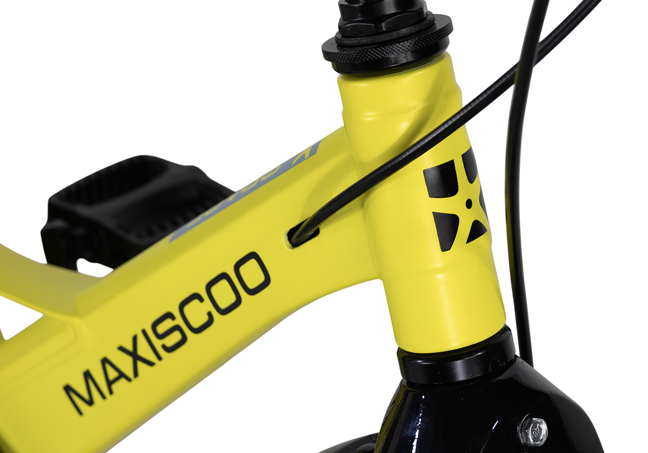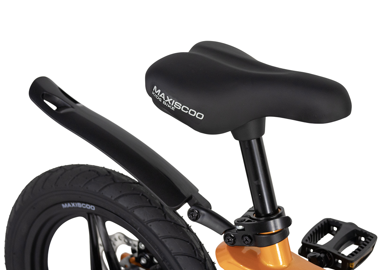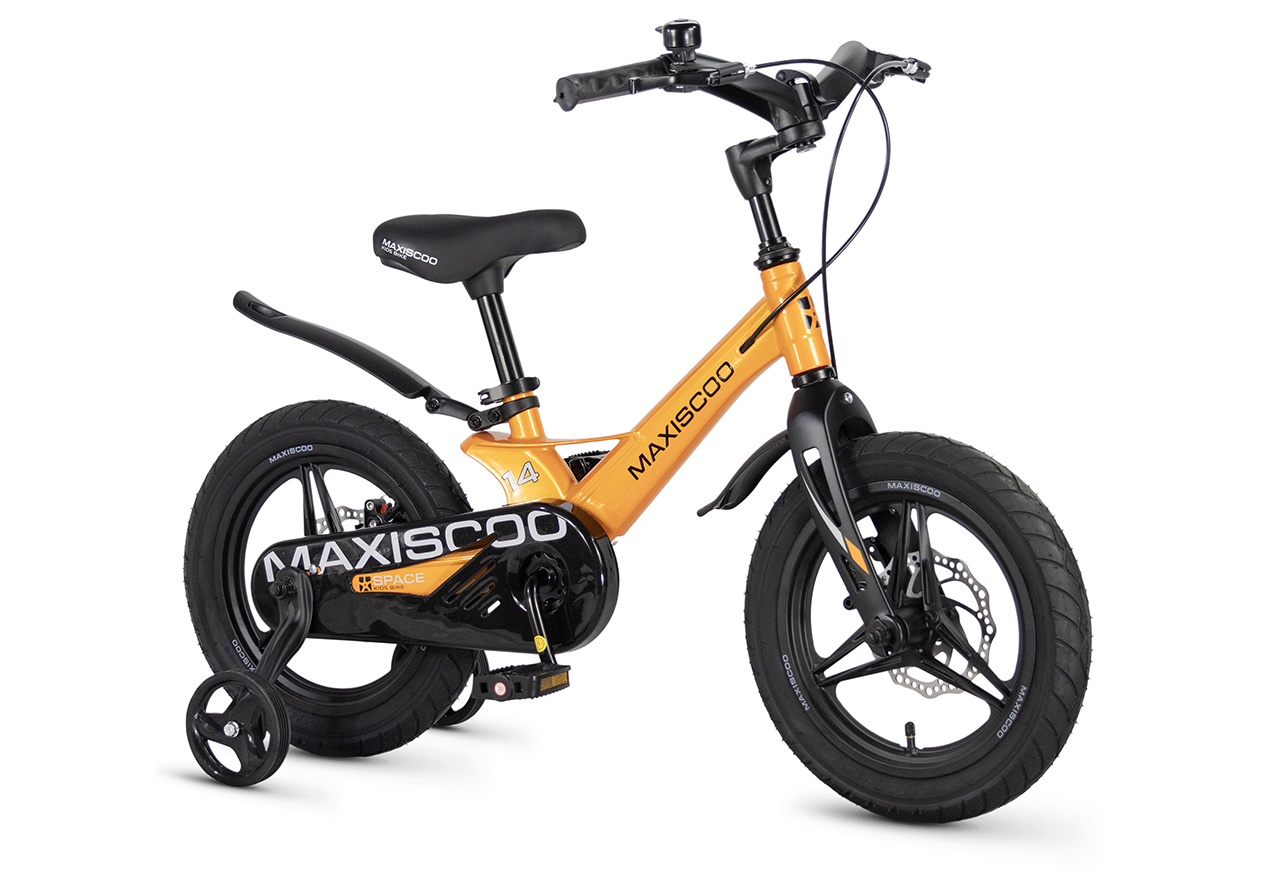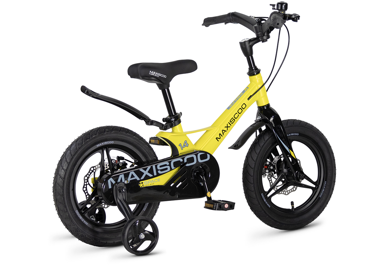 Велосипед, предназначенный для детей в возрасте от двух до четырех лет, без переключения передач. Технические особенности: легкая рама из магниевого сплава (скрытая проводка, прямой рулевой стакан, крепление калипера IS), жесткая вилка из магниевого сплава (крепление калипера IS), литые колеса из магниевого сплава (трёхлучевые, под ниппель AV), дисковые механические тормоза (роторы 140/140 мм), полная защита цепи, съемные боковые колеса, пластиковые крылья, звонок. Максимальная нагрузка - до 40 кг. Подходит для обучения и прогулочного катания в городских условиях. Диаметр колес - 14 дюймов. Вес - 7,4 кг.