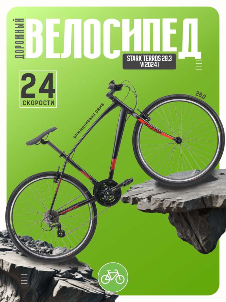 Дорожный велосипед для катания в городской среде с оборудованием начального любительского класса Shimano, 24 скорости. Технические особенности: алюминиевая рама AL-6061 (внутренняя проводка всех тросов), жесткая стальная вилка Grinz Rigid, двойные алюминиевые обода Qijian DA-20, надежные ободные тормоза Yinxing YX-C229 V-brake. Подходит для прогулочного катания в городских условиях. Диаметр колес - 28 дюймов. Вес - 12,5 кг.