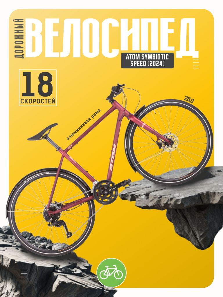 Дорожный велосипед с оборудованием любительского класса Shimano, 18 скоростей. Технические особенности: алюминиевая рама Alloy Triple Butted RaceLite 6061 (тройной баттинг, внутренняя проводка), жесткая алюминиевая вилка Rigid Alloy RaceLite 6061, двойные алюминиевые обода ATOM 700C Comp, дисковые гидравлические тормоза Shimano BR-MT200 (роторы Shimano RT10 160/160 мм), длинные крылья. Подходит для прогулочного и спортивного катания в городских условиях. Диаметр колес - 28 дюймов. Вес - 15 кг.