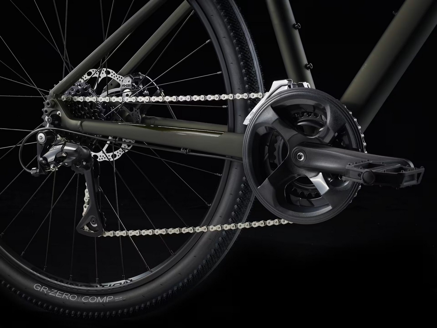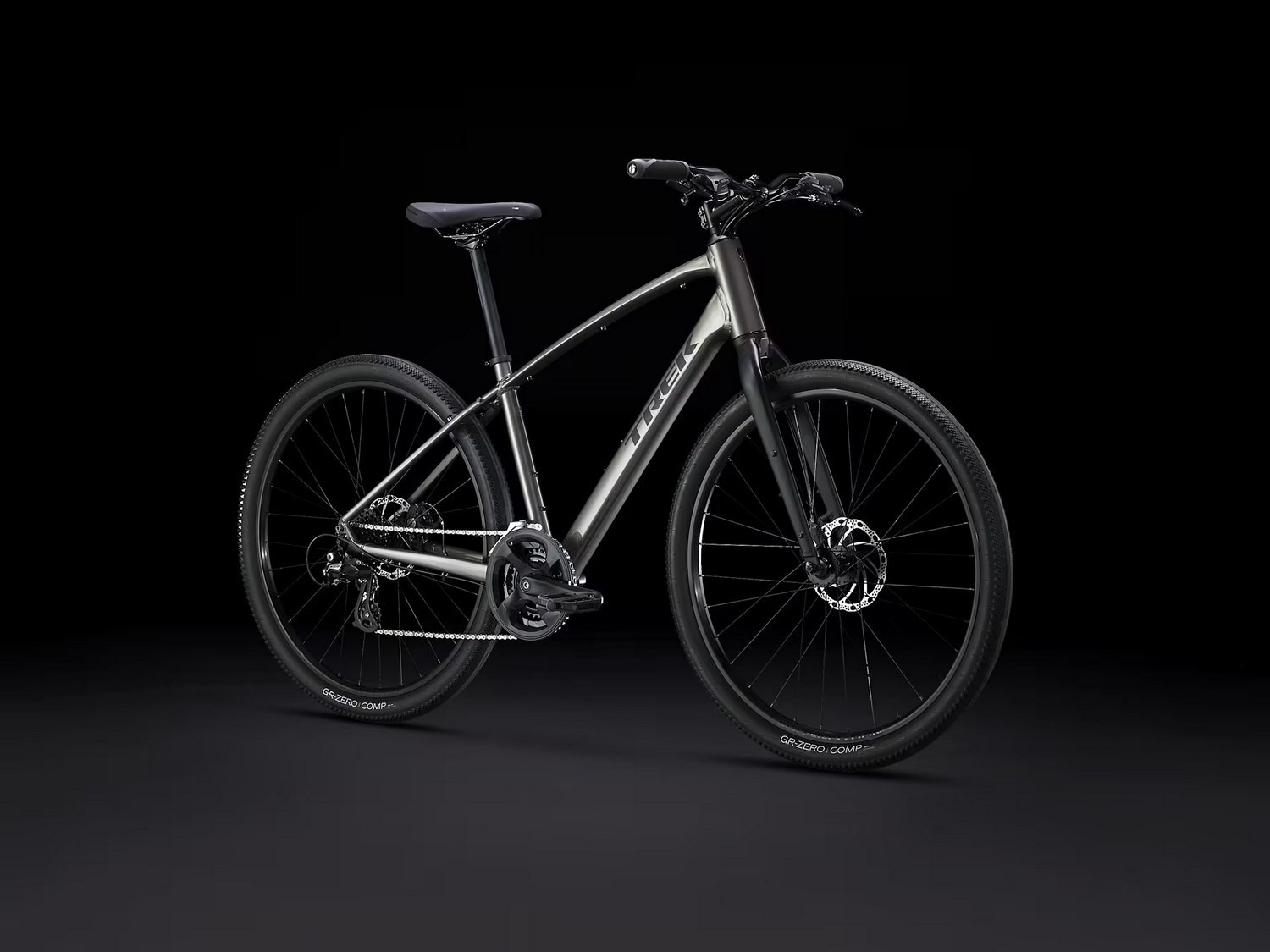 Дорожный велосипед гибридного типа с оборудованием любительского класса Shimano, 16 скоростей. Технические особенности: алюминиевая рама Alpha Gold Aluminum (скрытая проводка, крепление калипера Post Mount, бонки для багажника, флягодержателей и сумок), жёсткая стальная вилка Dual Sport steel (скрытая проводка, крепление под багажник), двойные алюминиевые обода Bontrager Connection (под ниппель AV), дисковые механические тормоза Tektro MD-U310 (роторы 160/160 мм). Подходит для активной езды по шоссе и несложной пересеченной местности. Диаметр колес - 27,5 дюймов. Вес - 14,05 кг.