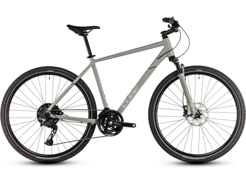 Дорожный велосипед гибридного типа с оборудованием профессионального класса Shimano, 22 скорости. Технические особенности: легкая алюминиевая рама Aluminium Superlite (двойной баттинг, конический рулевой стакан, частично скрытая проводка, сглаженные швы), амортизационная вилка SR Suntour NCX E RL Air T (воздушная, ход 63 мм, выносная блокировка), двойные алюминиевые обода CUBE EX25 (под ниппель AV), дисковые гидравлические тормоза Shimano Cues BR-U8000 (роторы 180/160 мм). Подходит для активной езды по различным дорогам и пересеченной местности. Диаметр колес - 28 дюймов. Вес - 13,4 кг.