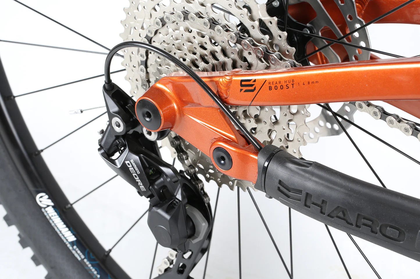 Двухподвес продвинутого уровня с оборудованием предпрофессионального класса Shimano, 11 скоростей. Технические особенности: алюминиевая рама Haro Shift R X6, амортизированная вилка Suntour XCR-34 Air, задний амортизатор X-Fusion 02 Pro RL, двойные алюминиевые обода Weinmann U-28 Disc, дисковые гидравлические тормоза C-Star Radius BH-M960. Подходит для экстремального катания в стиле трейл. Диаметр колес - 29 дюймов. Вес - 15,9 кг.