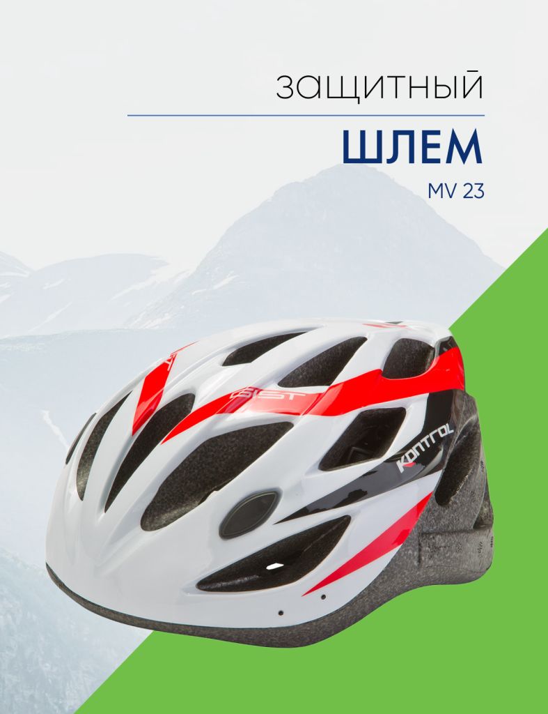 Защитный шлем MV 23 сможет защитить вашу голову при катании на велосипеде, роликовых коньках или самокате. Конструкция: Out-mold (верхний слой из поликарбоната соединен с основой из пенополистирола на клею). Шлем имеет 20 вентиляционных отверстий разной формы. Система микрорегулировки позволяет точно настроить шлем под размер. За надежную фиксацию отвечают удобные ремешки с быстрой застежкой. Размеры: М (55-58 см), L (58-61 см). Вес - 270 грамм. Цвет: белый/красный.
