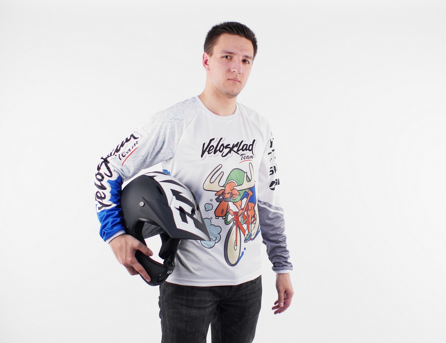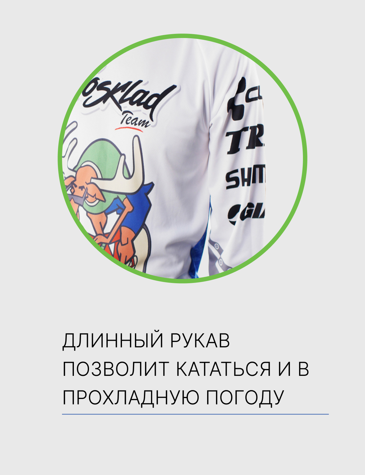 Фирменное джерси от нашего магазина идеально подходит для активных покатушек на свежем воздухе. И не случайно принтом на футболке выбран лось, ведь на сленге велосипедистов «лосячить» - это значит крутить педали, не жалея сил. Джерси изготовлена из полиэстера, поэтому она хорошо отводит влагу и сохраняет тепло. Длинный рукав позволит кататься и в прохладную погоду.