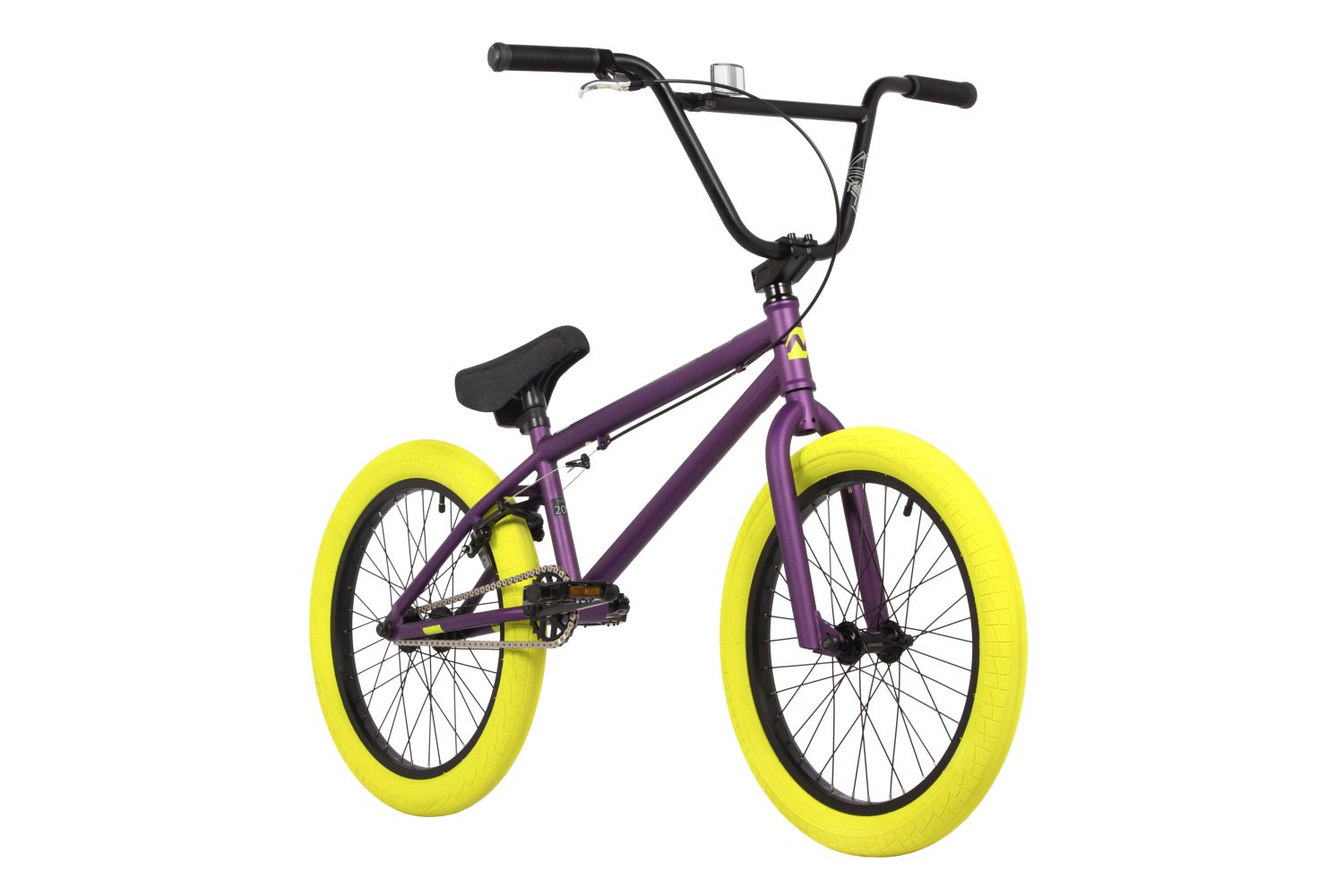 Экстремальный велосипед BMX без переключения передач. Технические особенности: прочная стальная рама (Hi-Ten, интегрированная рулевая колонка, не интегрированный зажим штыря, съёмные крепления тормоза, MID каретка, косынка), жесткая стальная вилка (Hi-Ten, безрезьбовой шток 1-1/8), двойные алюминиевые обода (под ниппель AV), задний ободной тормоз клещевого типа U-Brake. Подходит для экстремального катания в городских условиях или в специальных парках. Диаметр колес - 20 дюймов. Вес - 13,5 кг.