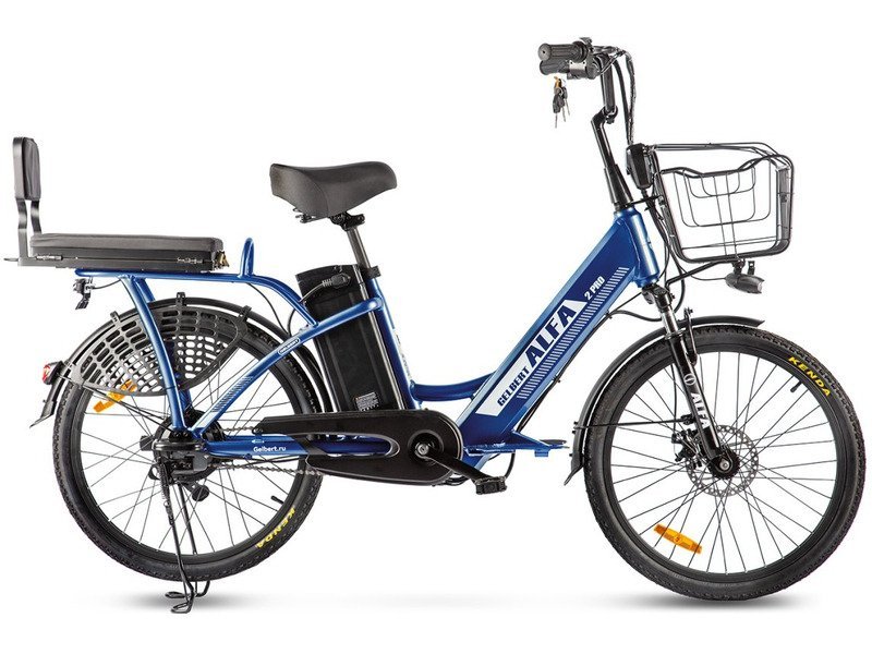 Комфортабельный электровелосипед без переключения передач. Подходит для прогулочного катания в городских условиях и по несложным маршрутам в лесу. Диаметр колес - 24 дюйма. Вес - 36 кг. Грузоподъемность - до 110 кг. Пробег на одной зарядке - до 40 км. Максимальная скорость - до 30 км/ч. Технические особенности: алюминиевая рама (Hardtail, интегрированный багажник), амортизационная вилка пружинного типа, двойные алюминиевые обода (под ниппель AV), передний тормоз - дисковый механический (ротор 160 мм), задний тормоз - барабанный, редукторный мотор мощностью 500 Вт, литий-ионная батарея емкостью 13 Ah, защита цепи, длинные металлические крылья, задний багажник с сиденьем и спинкой, комфортное седло, передняя корзина, система освещения, центральная подножка, подножки для водителя и пассажира, зеркала заднего вида.