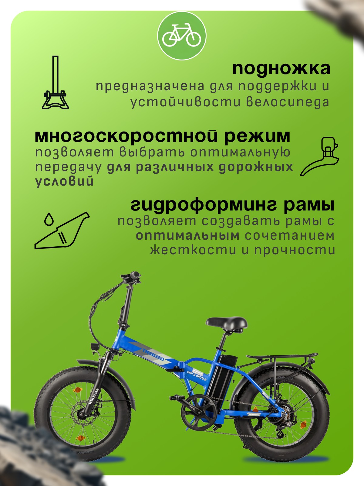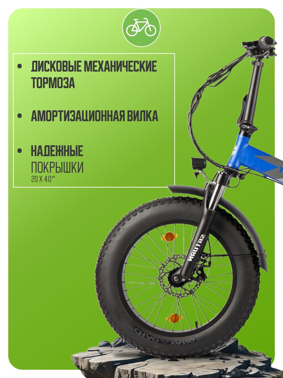 Складной электровелосипед с оборудованием начального класса, 7 скоростей. Технические особенности: складная алюминиевая рама (складной механизм, скрытая проводка, кареточный стакан BSA, съемный петух, крепление калипера IS), амортизационная вилка (ход 50 мм, блокировка, регулировка преднагрузки), двойные алюминиевые обода (под AV ниппель), дисковые механические тормоза, редукторный мотор 500 Вт, литий-ионный быстросъемный аккумулятор Li-Ion 48V/13 Ah, цветной ЖК-дисплей, крылья, задний багажник, система освещения. Подходит для прогулочной езды по различным дорогам и пересеченной местности. Максимальная скорость: до 30 км/ч. Пробег на одной зарядке: до 60 км. Грузоподъемность: до 130 кг. Диаметр колес - 20 дюймов. Вес - 31,5 кг.