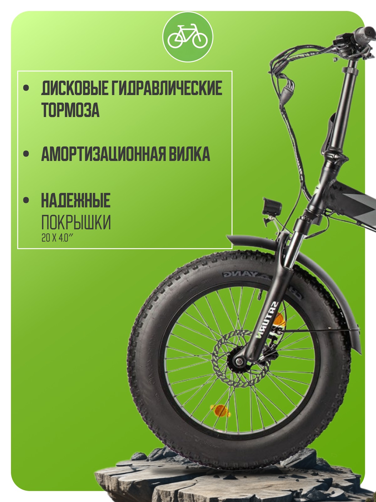 Складной электровелосипед с оборудованием начального класса, 7 скоростей. Технические особенности: складная алюминиевая рама (складной механизм, скрытая проводка, кареточный стакан BSA, съемный петух, крепление калипера IS), амортизационная вилка (ход 50 мм, блокировка, регулировка преднагрузки), двойные алюминиевые обода (под AV ниппель), дисковые гидравлические тормоза (роторы 160/160 мм), редукторный мотор 750 Вт, литий-ионный аккумулятор Li-Ion 48V/13 Ah, цветной ЖК-дисплей, крылья, задний багажник, система освещения. Подходит для прогулочной езды по различным дорогам и пересеченной местности. Максимальная скорость: до 30 км/ч. Пробег на одной зарядке: до 40 км. Грузоподъемность: до 110 кг. Диаметр колес - 20 дюймов. Вес - 31,5 кг.