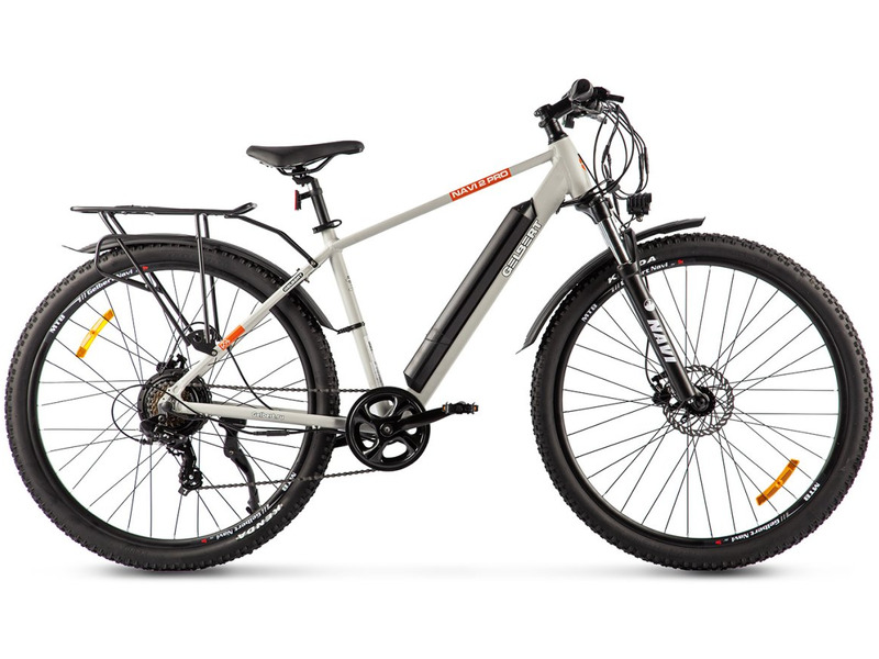 Спортивный электровелосипед с оборудованием начального класса Shimano, 7 скоростей. Технические особенности: легкая алюминиевая рама (скрытая проводка, кареточный стакан BSA, съемный петух, крепление калипера IS), амортизационная вилка (ход 100 мм, блокировка, регулировка преднагрузки), двойные алюминиевые обода (под AV ниппель), дисковые гидравлические тормоза (роторы 160/160 мм с креплением на 6 болтов), редукторный мотор мощностью 500 Вт, литий-ионный быстросъемный аккумулятор (36 В / 14 А·ч), цветной ЖК-дисплей, защита цепи, пластиковые крылья, задний багажник, система освещения. Подходит для активной езды по различным дорогам и пересеченной местности. Максимальная скорость: до 35 км/ч. Пробег на одной зарядке: до 50 кг. Грузоподъемность: до 110 кг. Диаметр колес - 29 дюймов. Вес - 26 кг.