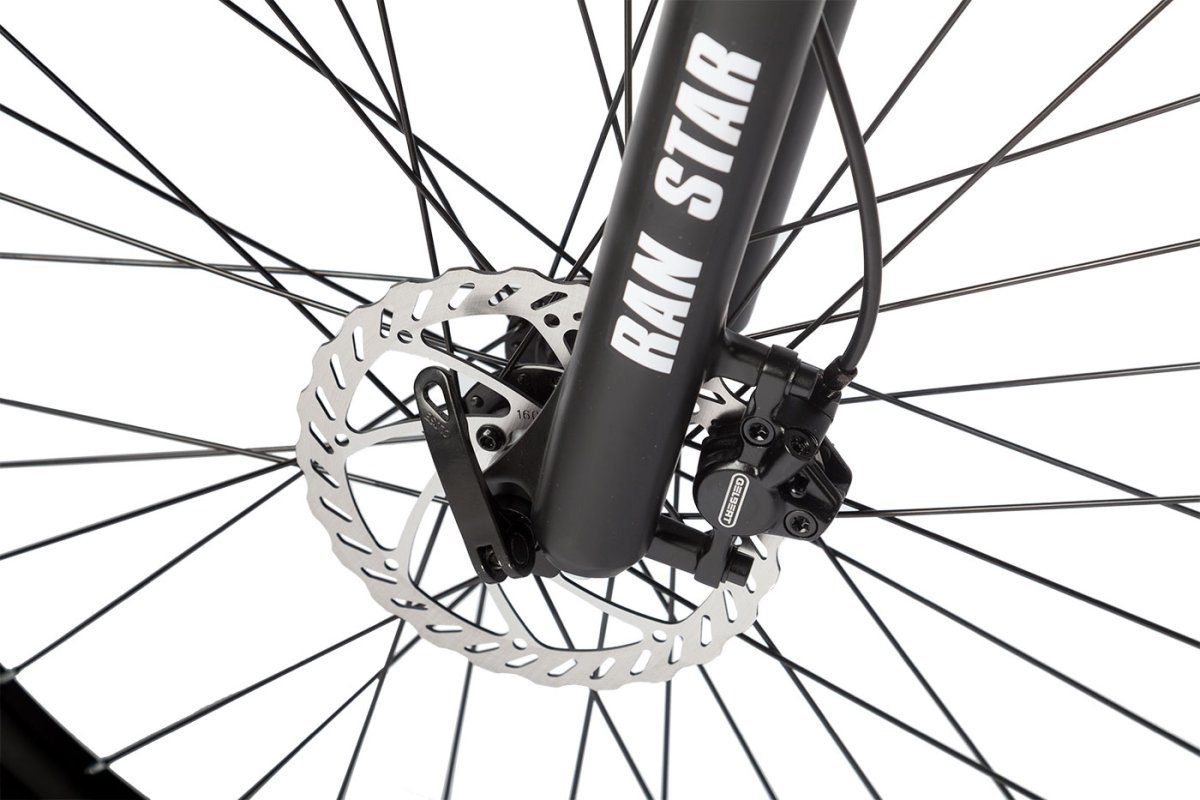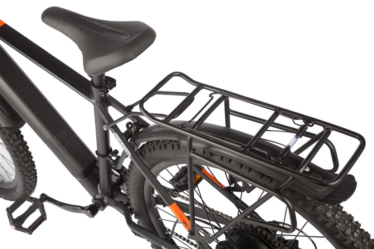 Спортивный электровелосипед с оборудованием начального класса Shimano, 7 скоростей. Технические особенности: легкая алюминиевая рама (скрытая проводка, кареточный стакан BSA, съемный петух, крепление калипера IS), амортизационная вилка (пружинно-эластомерная, ход 100 мм, блокировка, регулировка преднагрузки), двойные алюминиевые обода (под AV ниппель), дисковые гидравлические тормоза (роторы 160/160 мм с креплением на 6 болтов), редукторный мотор мощностью 500 Вт, литий-ионный быстросъемный аккумулятор (36 В / 10.4 А·ч), пластиковые крылья, задний багажник, система освещения, ЖК-дисплей, защита цепи, подножка, катафоты. Подходит для активной езды по различным дорогам и пересеченной местности. Максимальная скорость: до 25 км/ч. Пробег на одной зарядке: до 40 кг. Грузоподъемность: до 110 кг. Диаметр колес - 27,5 дюймов. Вес - 22 кг.
