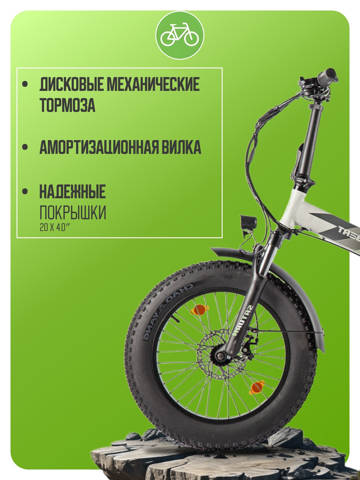 Складной электровелосипед с оборудованием начального класса, 7 скоростей. Технические особенности: складная алюминиевая рама (складной механизм, скрытая проводка, кареточный стакан BSA, съемный петух, крепление калипера IS), амортизационная вилка (ход 50 мм, блокировка, регулировка преднагрузки), двойные алюминиевые обода (под AV ниппель), дисковые механические тормоза, редукторный мотор 350 Вт, литий-ионный быстросъемный аккумулятор Li-Ion 48V/10.4 Ah, цветной ЖК-дисплей, крылья, задний багажник, система освещения. Подходит для прогулочной езды по различным дорогам и пересеченной местности. Максимальная скорость: до 30 км/ч. Пробег на одной зарядке: до 30 км. Грузоподъемность: до 110 кг. Диаметр колес - 20 дюймов. Вес - 30,5 кг.
