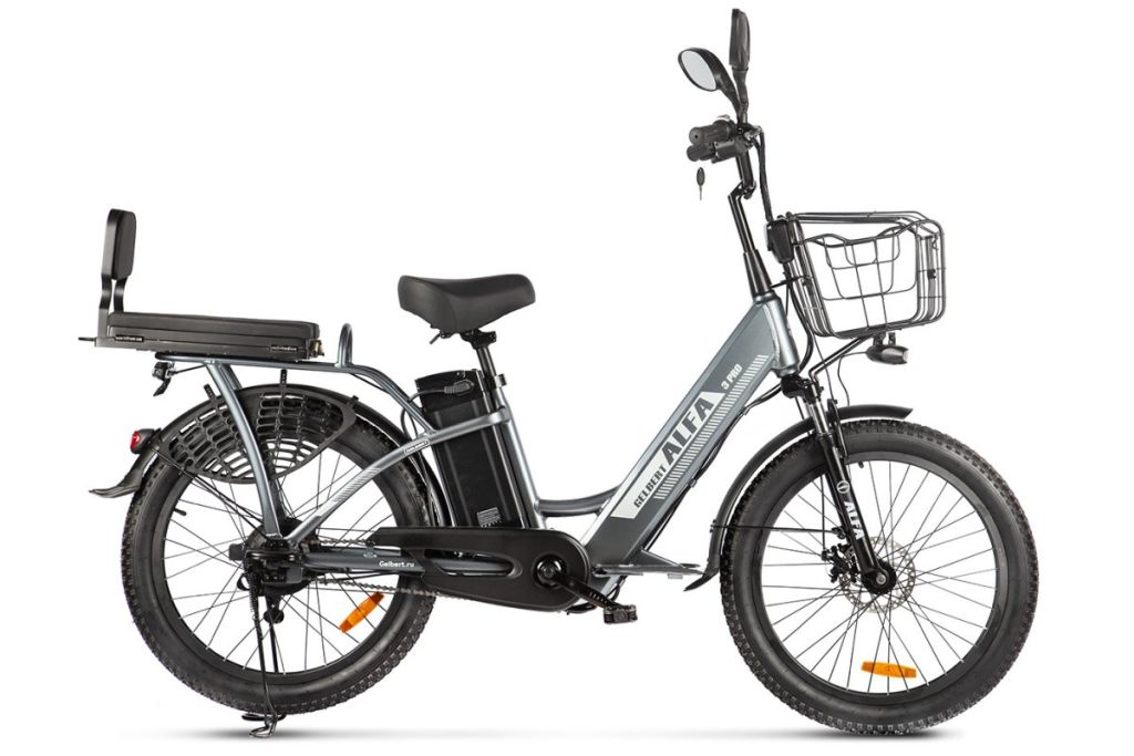 Комфортабельный электровелосипед без переключения передач. Подходит для прогулочного катания в городских условиях и по несложным маршрутам в лесу. Диаметр колес - 24 дюйма. Вес - 37 кг. Грузоподъемность - до 110 кг. Пробег на одной зарядке - до 50 км. Максимальная скорость - до 30 км/ч. Технические особенности: алюминиевая рама (Hardtail, интегрированный багажник), амортизационная вилка пружинного типа, двойные алюминиевые обода (под ниппель AV), передний тормоз - дисковый механический (ротор 160 мм), задний тормоз - барабанный, редукторный мотор мощностью 500 Вт, литий-ионная батарея емкостью 16.7 Ah, защита цепи, длинные металлические крылья, задний багажник с сиденьем и спинкой, комфортное седло, передняя корзина, система освещения, центральная подножка, подножки для водителя и пассажира, зеркала заднего вида.