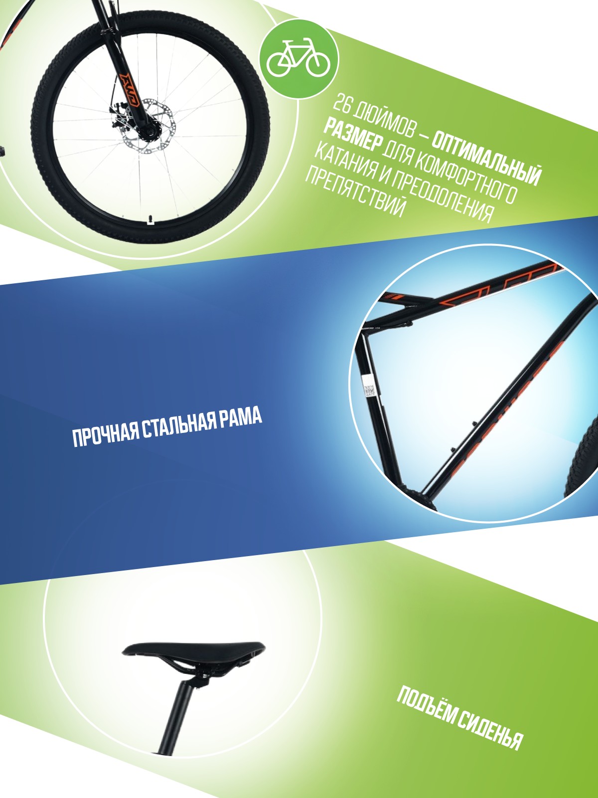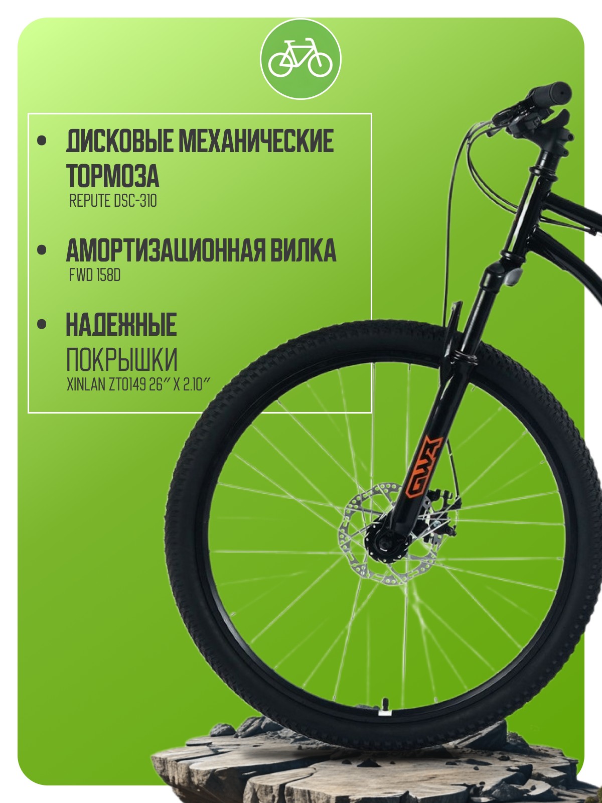 Горный велосипед для начинающих с навесным оборудованием Shimano/LTWOO, 8 скоростей. Технические особенности: прочная стальная рама (открытая прокладка тросов, кареточный стакан BSA, крепление калипера IS, интегрированный петух, бонки для багажника и флягодержателя), амортизационная вилка FWD 158D (пружинная, стальная, ход 80 мм, крепление калипера IS), двойные алюминиевые обода FWD (под AV ниппель), дисковые механические тормоза Repute DSC-310 (роторы 160/160 мм с креплением на 6 болтов), подножка. Подходит для прогулочного катания в городских условиях и по несложным маршрутам в лесу. Диаметр колес - 26 дюймов. Вес - 17 кг.