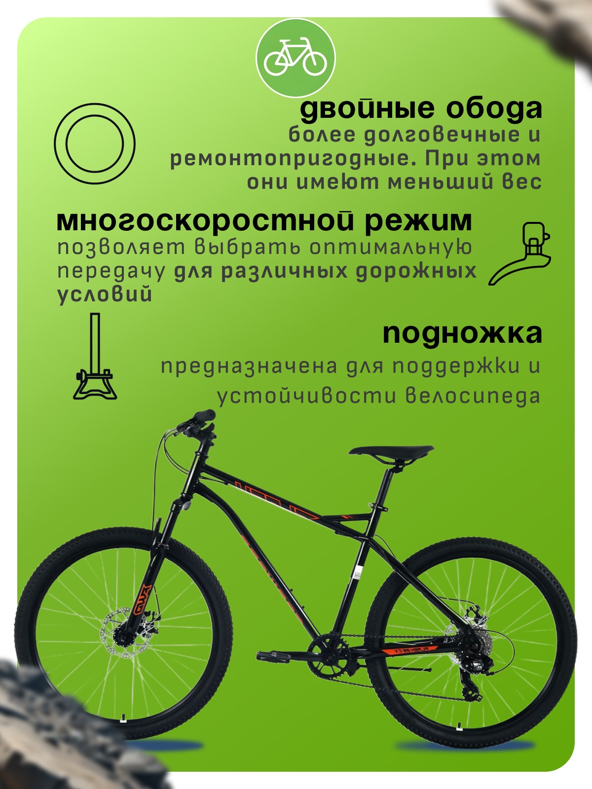 Особенности велосипеда: Амортизационная вилка, Двойные обода, Дисковые тормоза, Многоскоростной, Подножка.