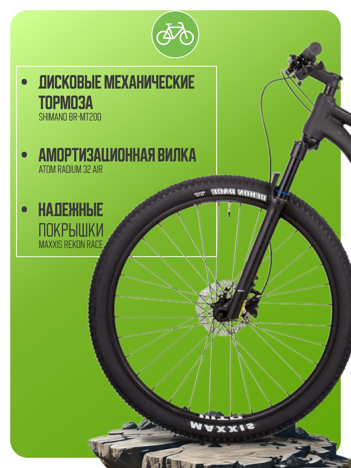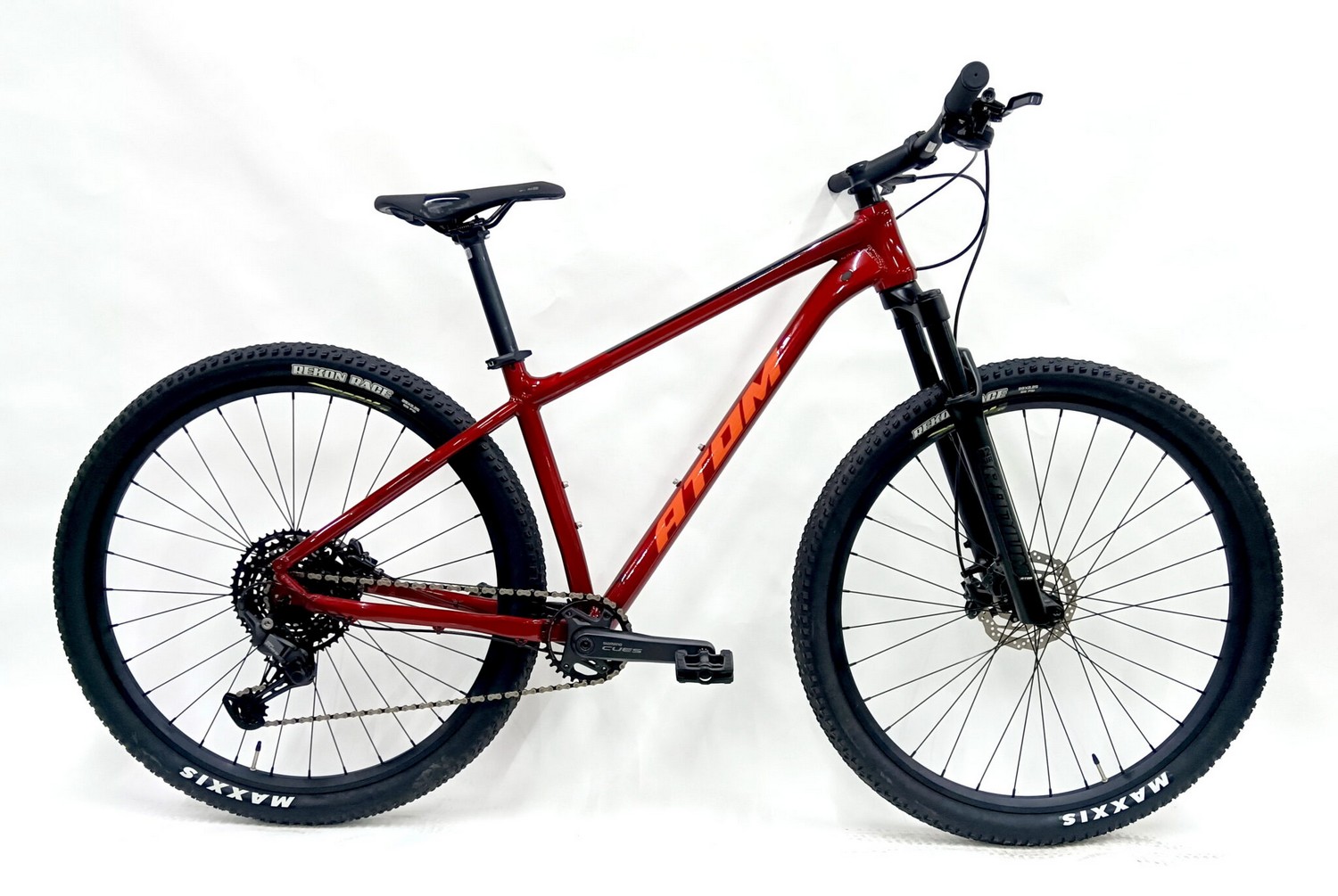 Облегченный хардтейл для кросс-кантри с оборудованием пердпрофессионального класса Shimano, 11 скоростей. Технические особенности: легкая алюминиевая рама ATOM B9 TFS (тройной баттинг, скрытая проводка, конический рулевой стакан), амортизационная вилка ATOM Radium 32 Air (воздушная, гидравлическая блокировка, ход 100 мм), двойные алюминиевые обода WTB STi23 (подходят для бескамерного использования), дисковые гидравлические тормоза Shimano BR-MT200 (роторы Shimano SM-RT10-S Centerlock 160/160 мм). Подходит для активного катания в стиле кросс-кантри. Диаметр колес - 29 дюймов. Вес - 13,5 кг.