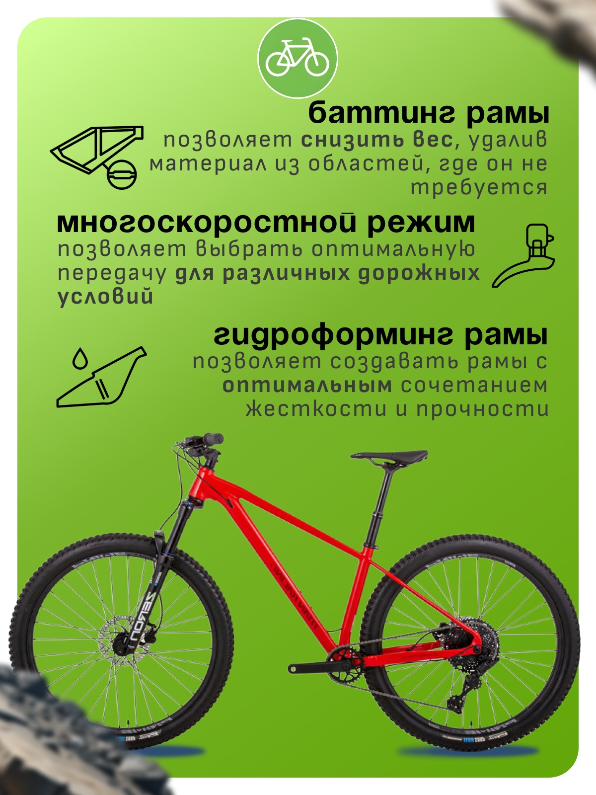 Особенности велосипеда: Алюминиевая рама, Амортизационная вилка, Баттинг рамы, Гидравлический привод тормозов, Гидроформинг рамы, Двойные обода, Дисковые тормоза, Масляная или воздушная вилка, Многоскоростной, Подседельный штырь опускаемый с руля.