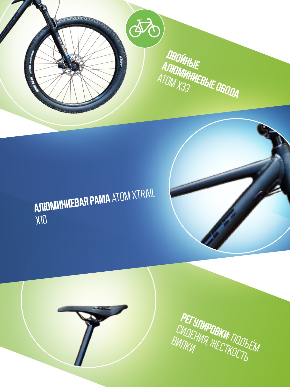 Atom Xtrail X10, геометрия Downcountry, трубы из алюминия 6061 с тройным баттингом, внутренняя проводка тросов и гидролиний, задний треугольник стандарта Boost 148×12, крепление переключателя SRAM UDH