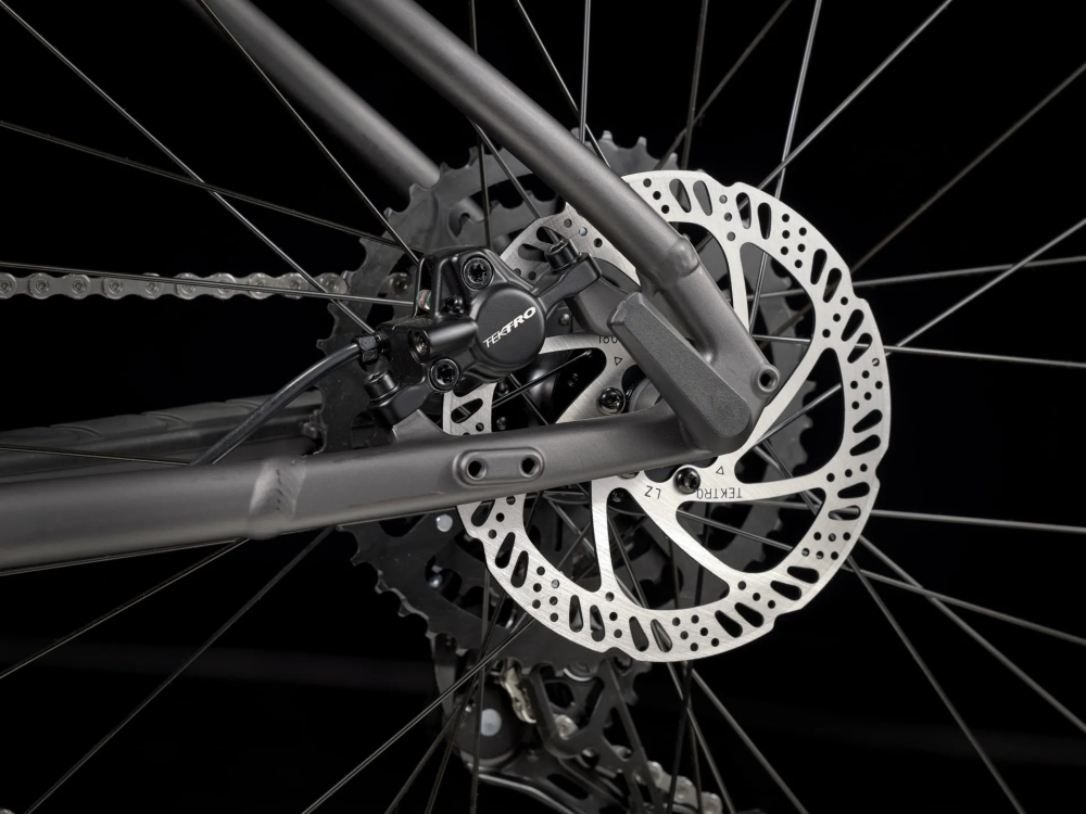 Горный велосипед с оборудованием начального любительского класса Shimano, 9 скоростей. Технические особенности: алюминиевая рама Alpha Silver Aluminum (скрытая проводка, гидроформинг, съемный петух), амортизационная вилка SR Suntour XCT 30 (пружинно-эластомерная, ход 100 мм, регулировка преднагрузки, блокировка), двойные алюминиевые обода Bontrager Connection (под ниппель AV), дисковые гидравлические тормоза Tektro HD-M275 (роторы 180/160 мм). Подходит для активной езды по различным дорогам и пересеченной местности. Trek предоставляет пожизненную гарантию на свои алюминиевые рамы. Диаметр колес - 29 дюймов. Вес - 15,1 кг.