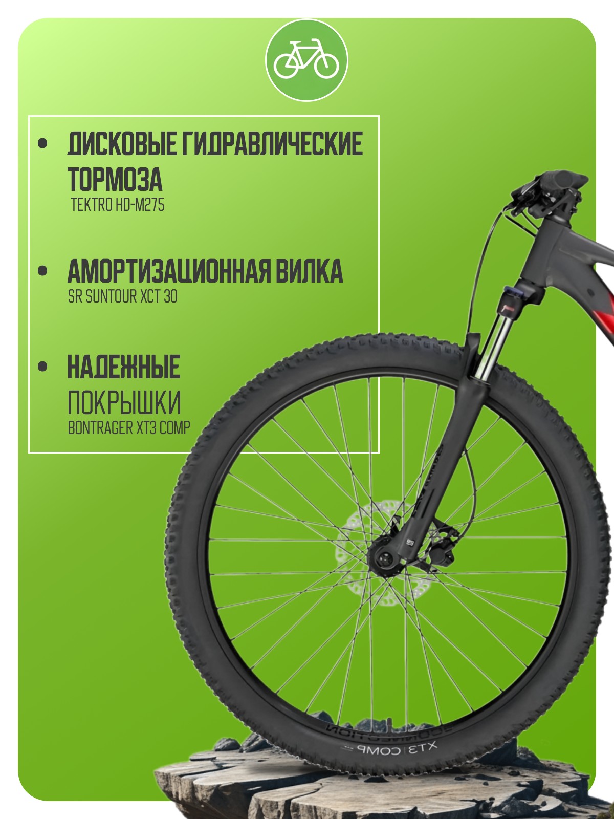 Особенности велосипеда: Алюминиевая рама, Амортизационная вилка, Баттинг рамы, Гидравлический привод тормозов, Гидроформинг рамы, Двойные обода, Дисковые тормоза, Многоскоростной.