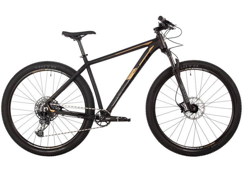 Легкий хардтейл для езды в стиле кросс-кантри с оборудованием предпрофессионального класса SRAM, 12 скоростей. Технические особенности: алюминиевая рама (двойной баттинг и гидроформинг труб, формированные перья, конусный рулевой стакан ZS, кареточный стакан BSA, крепление калипера внутри перьев PM, съемный петух, скрытая прокладка тросов, бонки для флягодержателя, полированные швы, крепление калипера PM), амортизационная вилка RockShox Judy Silver TK (воздушно-масляная, ход 100 мм, регулировка давления пружины, блокировка хода через манетку на руле, Boost 15х110 мм, крепление калипера PM), двойные алюминиевые обода Alexrims MD23 Tubless Ready (пистонированные, совместимы с бескамерной резиной, под FV ниппель), дисковые гидравлические тормоза Sram Level (роторы 180/160 мм). Подходит для спортивного катания в стиле кросс-кантри и участия в гонках. Диаметр колес - 29 дюймов. Вес - 13,6 кг.