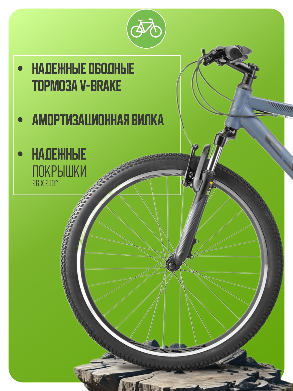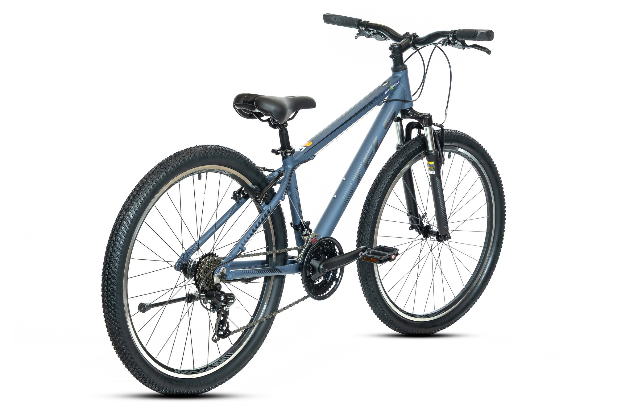 Горный велосипед для начинающих с навесным оборудованием Shimano, 21 скорость. Технические особенности: легкая алюминиевая рама (частично скрытая прокладка тросов, кареточный стакан BSA), амортизационная вилка (пружинно-эластомерная, стальная с алюминиевой короной, ход 60 мм, крепление калипера IS), двойные алюминиевые обода (под AV ниппель), надежные ободные тормоза V-Brake, подножка, катафоты. Подходит для прогулочной езды по различным дорогам и пересеченной местности. Диаметр колес - 26 дюймов. Вес - 15,5 кг.