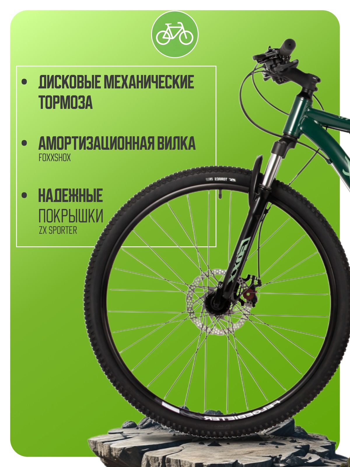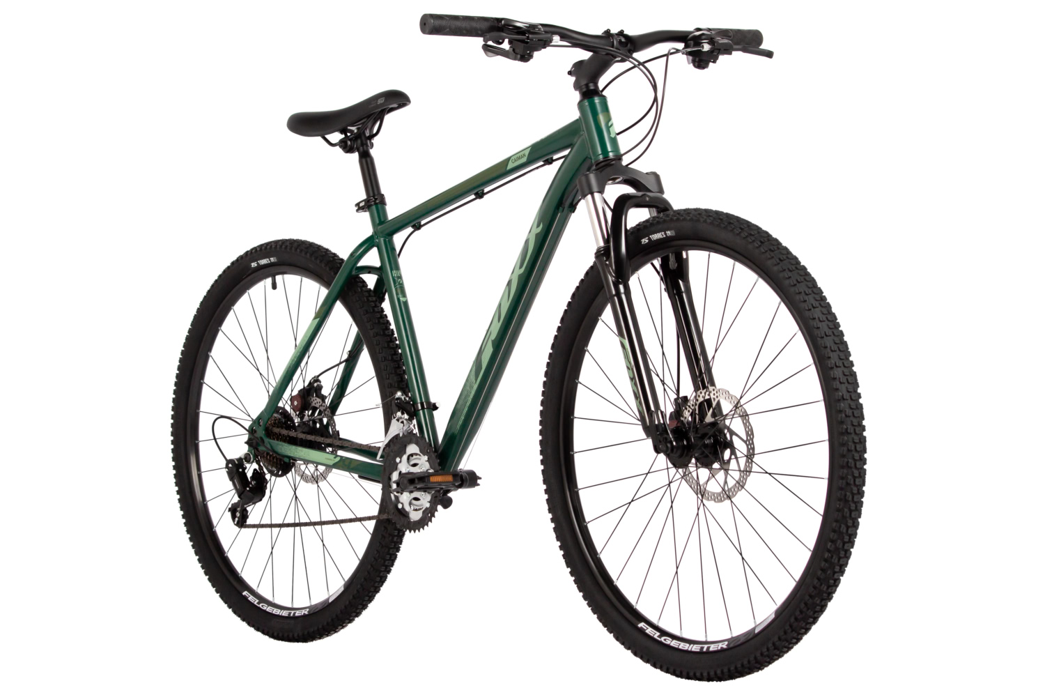 Горный велосипед для начинающих с навесным оборудованием Shimano, 21 скорость. Технические особенности: прочная стальная рама (крепление калипера IS, интегрированный петух), амортизационная вилка Foxxshox (пружинная, ход 50 мм, алюминиевая корона), двойные алюминиевые обода (под AV ниппель), дисковые механические тормоза (роторы 180/160 мм, крепление на 6 болтов), подножка, катафоты. Подходит для прогулочной езды по различным дорогам и пересеченной местности. Диаметр колес - 29 дюйма. Вес - 18 кг.