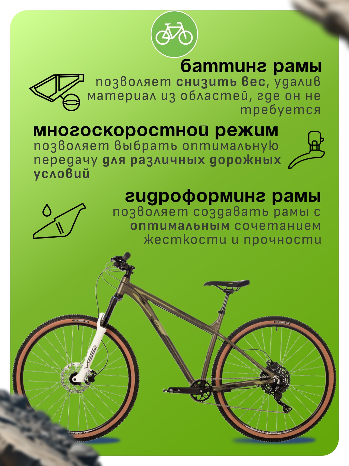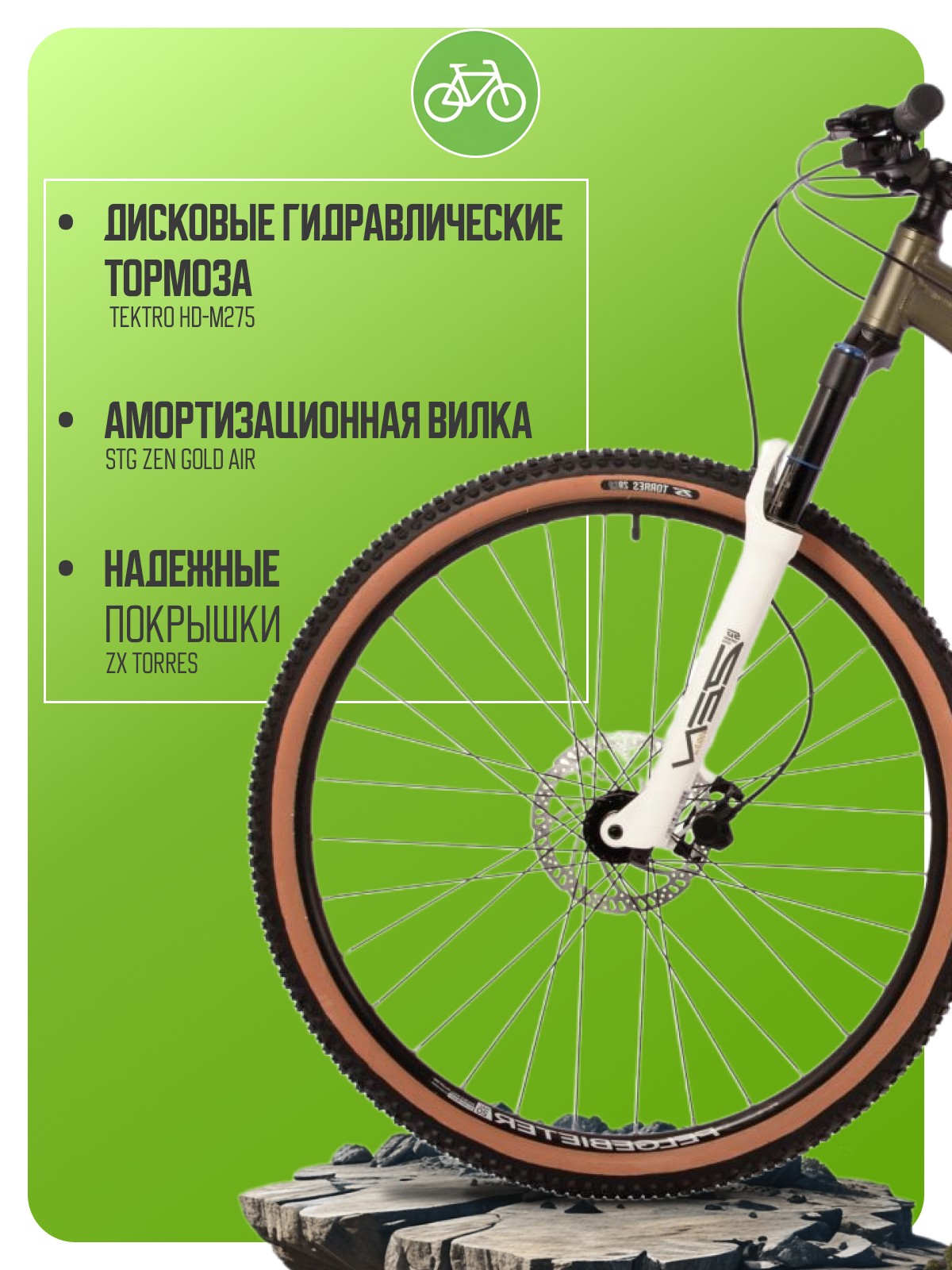 Хардтейл для езды в стиле трейл с навесным оборудованием любительского класса Microshift, 9 скоростей. Технические особенности: алюминиевая рама AL-6061 (рулевой стакан ZS, кареточный стакан BSA, крепление калипера IS, съемный петух, скрытая прокладка тросов переключения скоростей, открытая прокладка тормозного тормоза, бонки для флягодержателя), амортизационная вилка STG Zen Gold Air (воздушная, ход 130 мм, регулировка компрессии и демпфирования, крепление калипера PM, Boost 15х110 мм), двойные алюминиевые обода Felgebeiter HAC-20, дисковые гидравлические тормоза Tektro HD-M275 (роторы 180/160 мм), регулируемый с руля подседельный штырь. Подходит для активного катания по различным дорогам и несложной пересеченной местности. Диаметр колес - 29 дюймов. Вес - 14,9 кг.