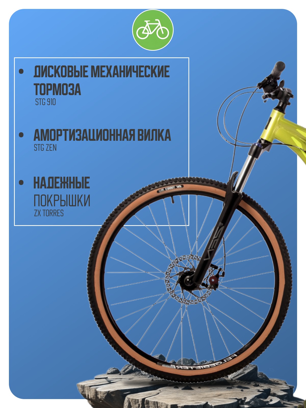 Хардтейл для езды в стиле трейл с оборудованием любительского класса Microshift, 8 скоростей. Технические особенности: алюминиевая рама 6061-T6 (рулевой стакан ZS, кареточный стакан BSA, крепление калипера IS, съемный петух, скрытая прокладка тросов переключения скоростей, открытая прокладка тормозного тормоза, бонки для флягодержателя), амортизационная вилка STG Zen (пружинная, ход 130 мм, регулировка преднатяга пружины, блокировка, крепление калипера PM, Boost 15х110 мм), двойные алюминиевые обода Felgebeiter HAC-20, дисковые механические тормоза STG 910 (роторы 180/160 мм). Подходит для активной езды по различным дорогам и пересеченной местности. Диаметр колес - 29 дюймов. Вес - 14,9 кг.