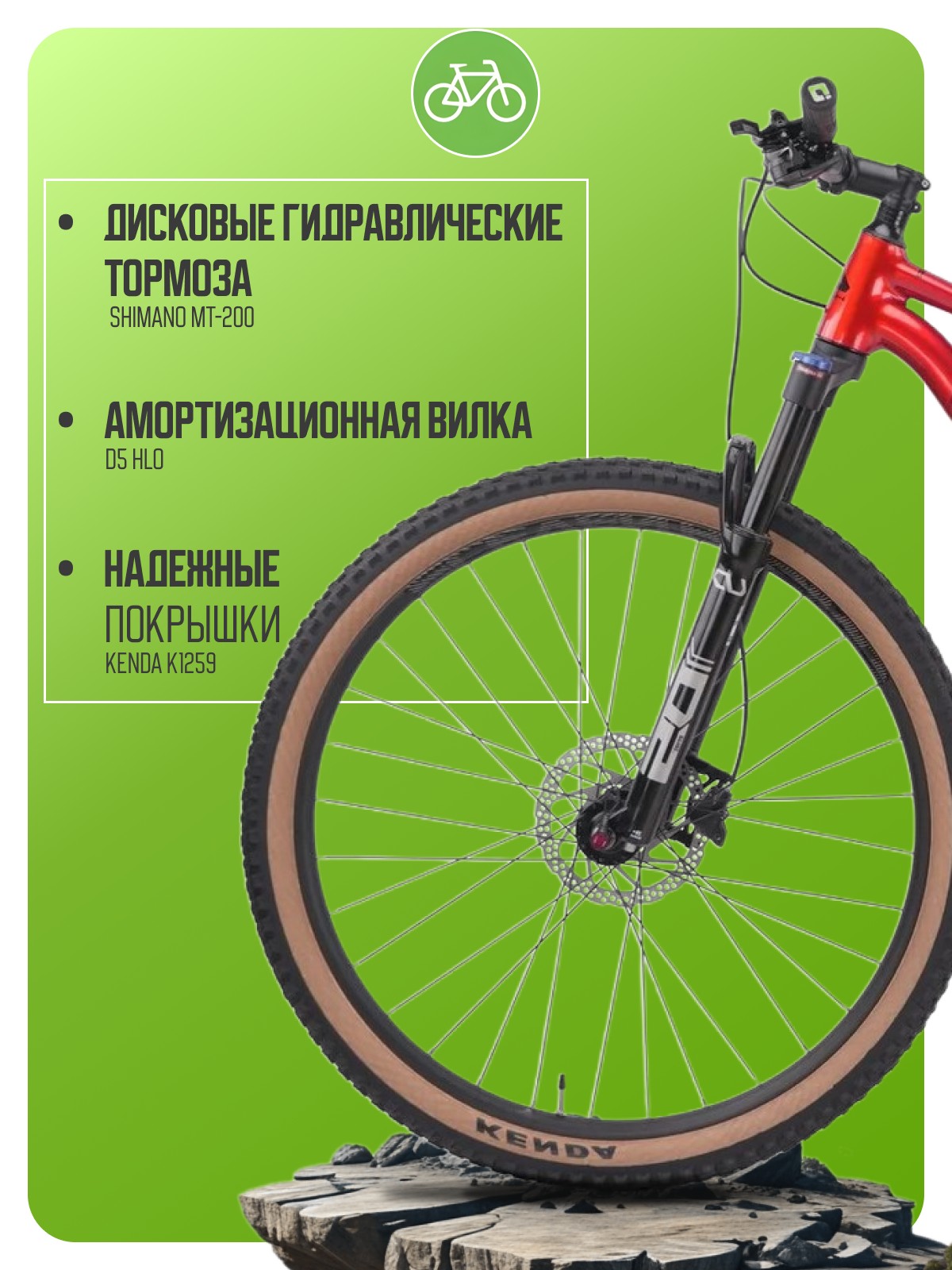 Горный велосипед с оборудованием высшего любительского класса Shimano, 9 скоростей. Технические особенности: легкая алюминиевая рама (полая ось Boost, бесшовная, конусный стакан, полная внутренняя проводка), амортизационная вилка D5 HLO (пружинно-масляная, полая ось Boost 15х110 мм, ход 100 мм, магниевые штаны, ноги диаметром 32 мм, черная анодировка), двойные алюминиевые обода (ширина 27 мм, под ниппель Presta F/V 48 мм), дисковые гидравлические тормоза Shimano MT-200 (роторы 180/160 мм). Подходит для активной езды по различным дорогам и пересеченной местности. Диаметр колес - 27,5 дюймов. Вес - 14,7 кг (для размера 18 М).